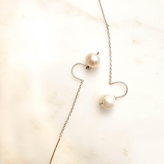 Gravity: Pearl Threader Earrings, Sterling Silver