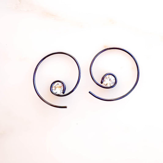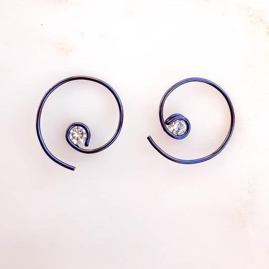 Midnight CZ Spiral Hoop Earrings, Niobium