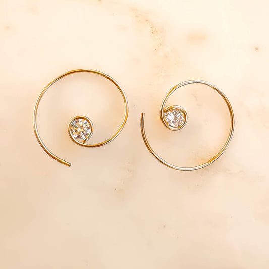 Threader CZ Spiral Hoop Earrings, 14K Gold Filled