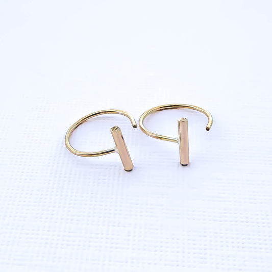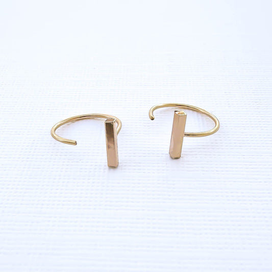 Bar Threader Half Hoop Earrings, 14K Gold Filled