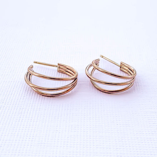 Triple Hoop Earrings, 14K Rose Gold Filled