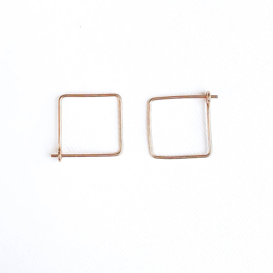 Mini Square Hoop Earrings, 14K Rose Gold Filled