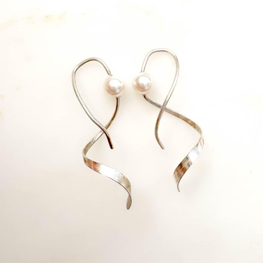 Dancing Through: Pearl Spiral Earrings, Sterling Silver