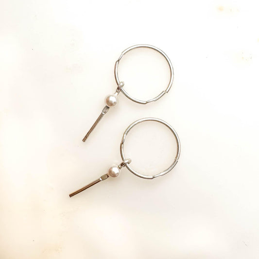 That Girl: Pearl Drop Mini Hoops, Sterling Silver