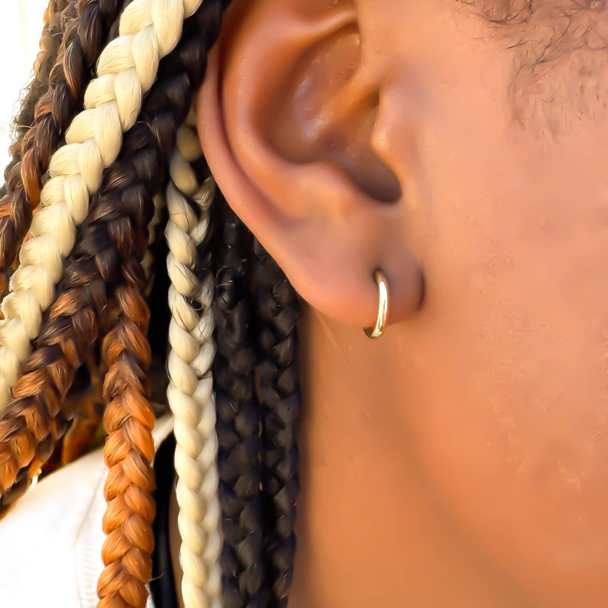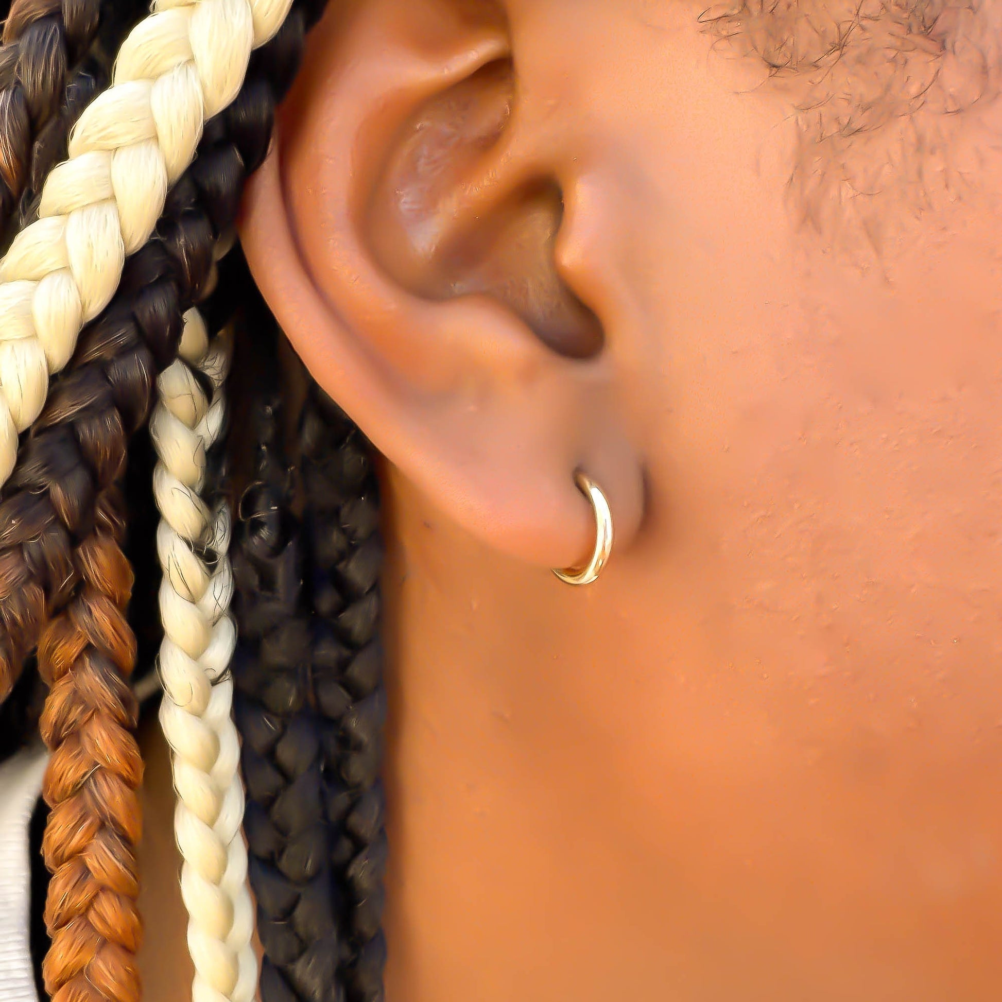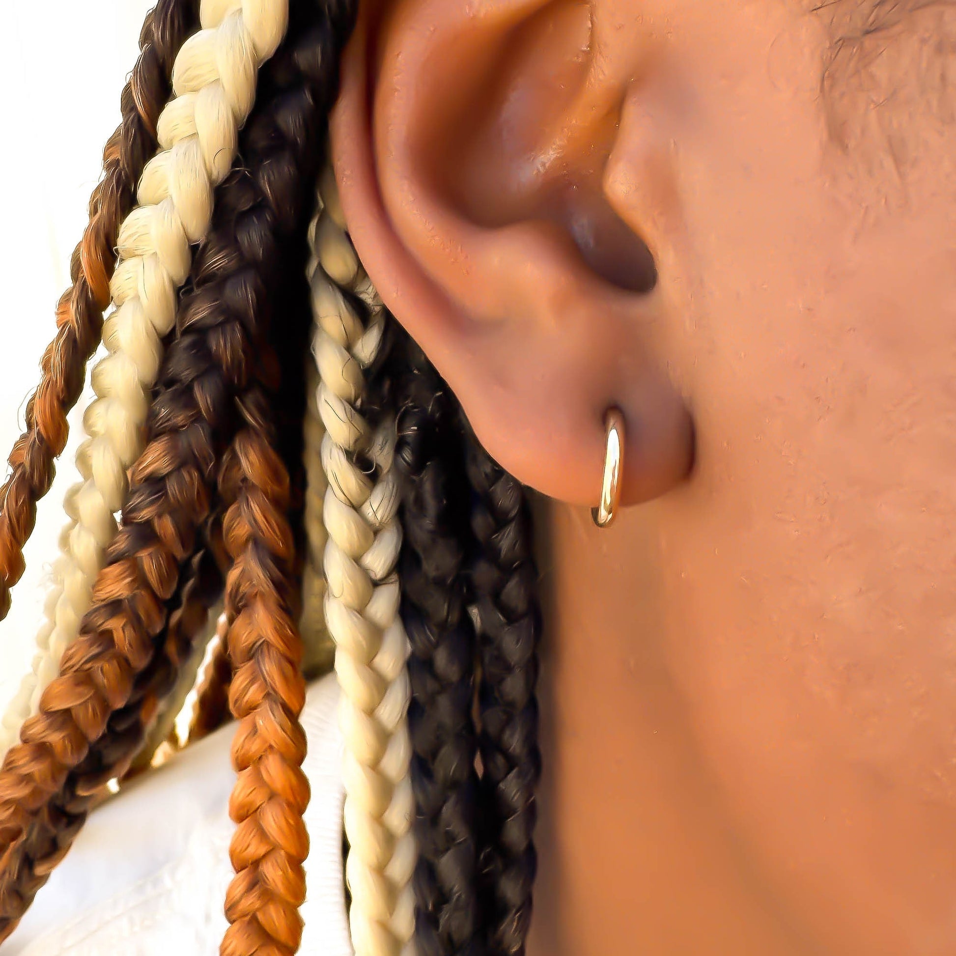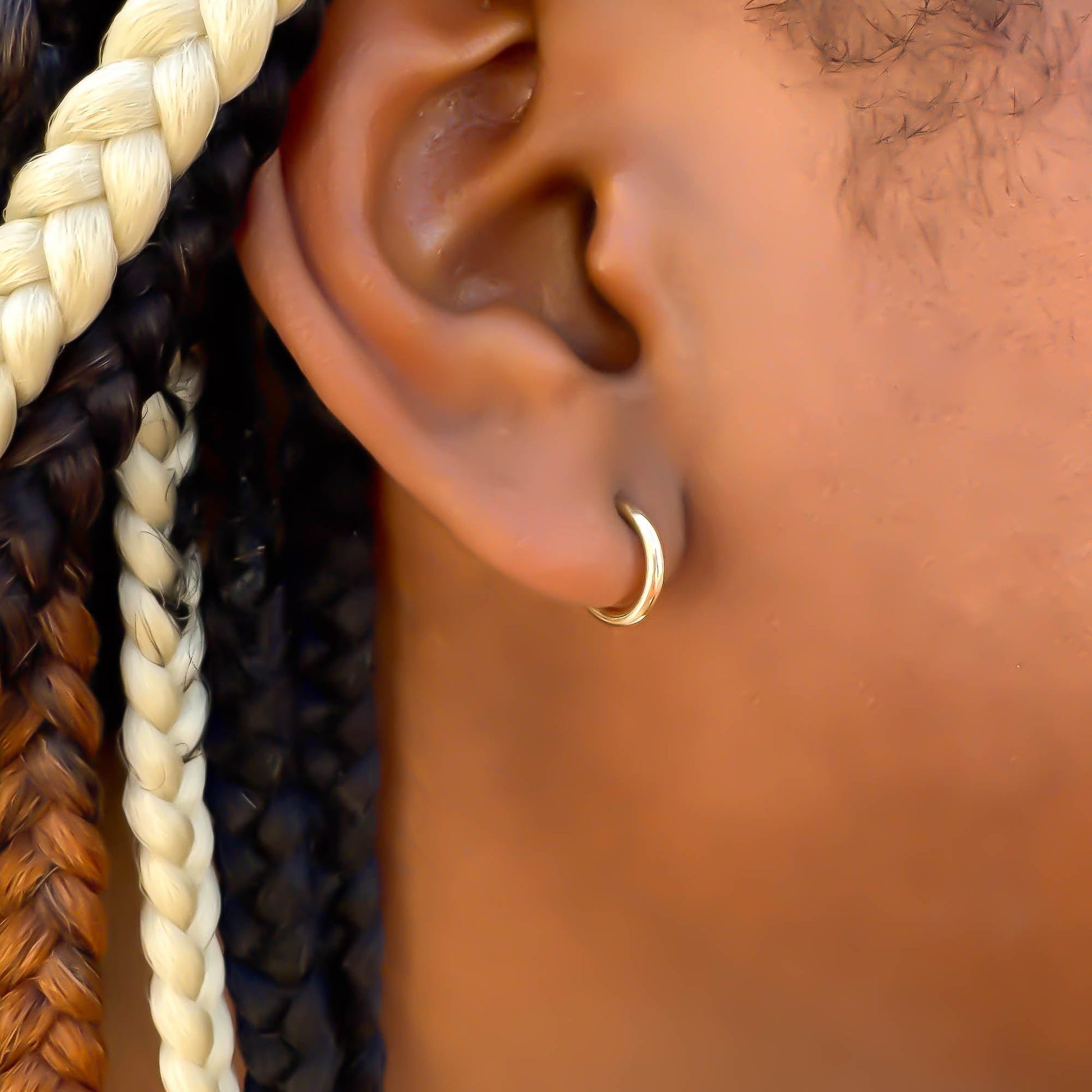 • Hoop is open in the back and comes with silicone earring backs to secure earring in place.