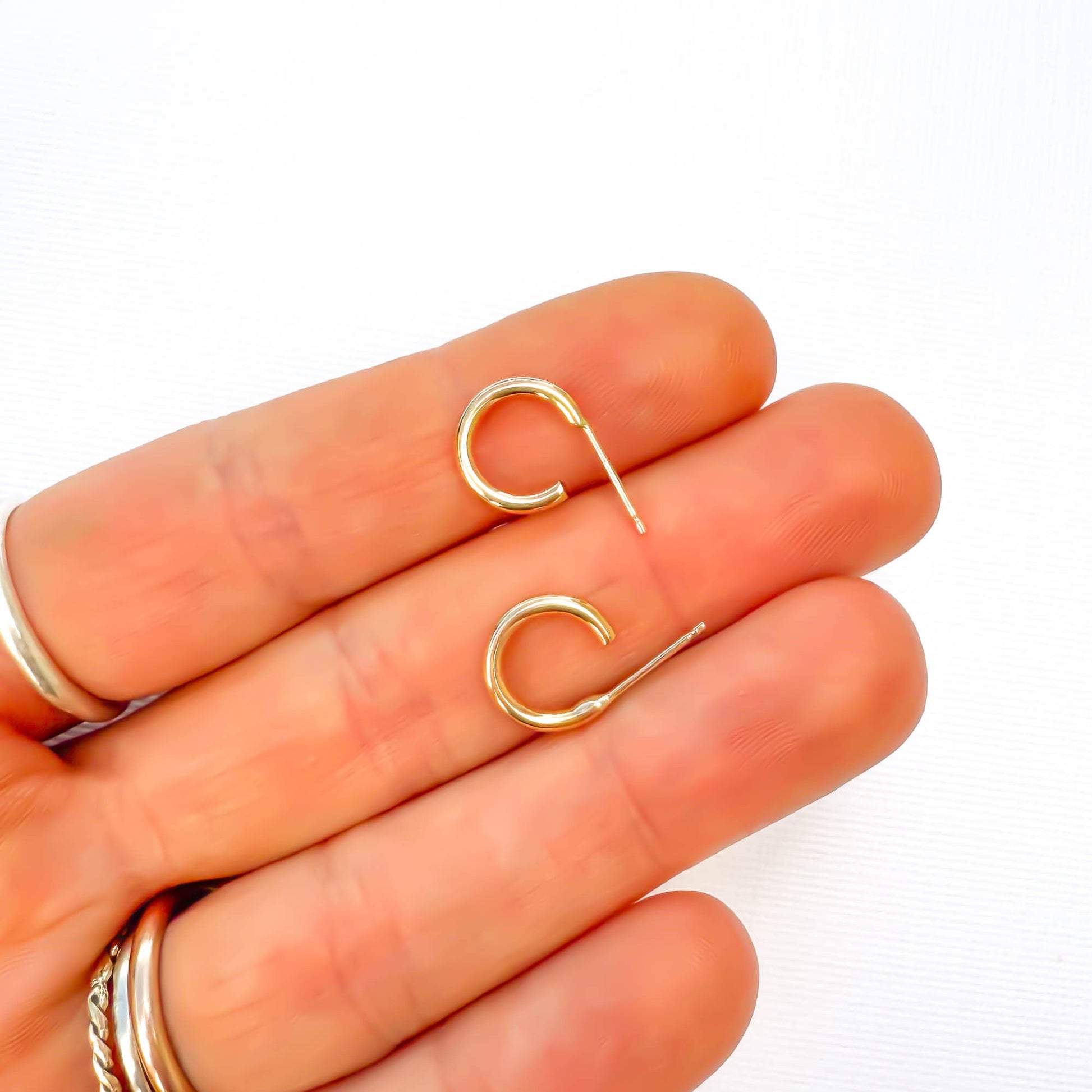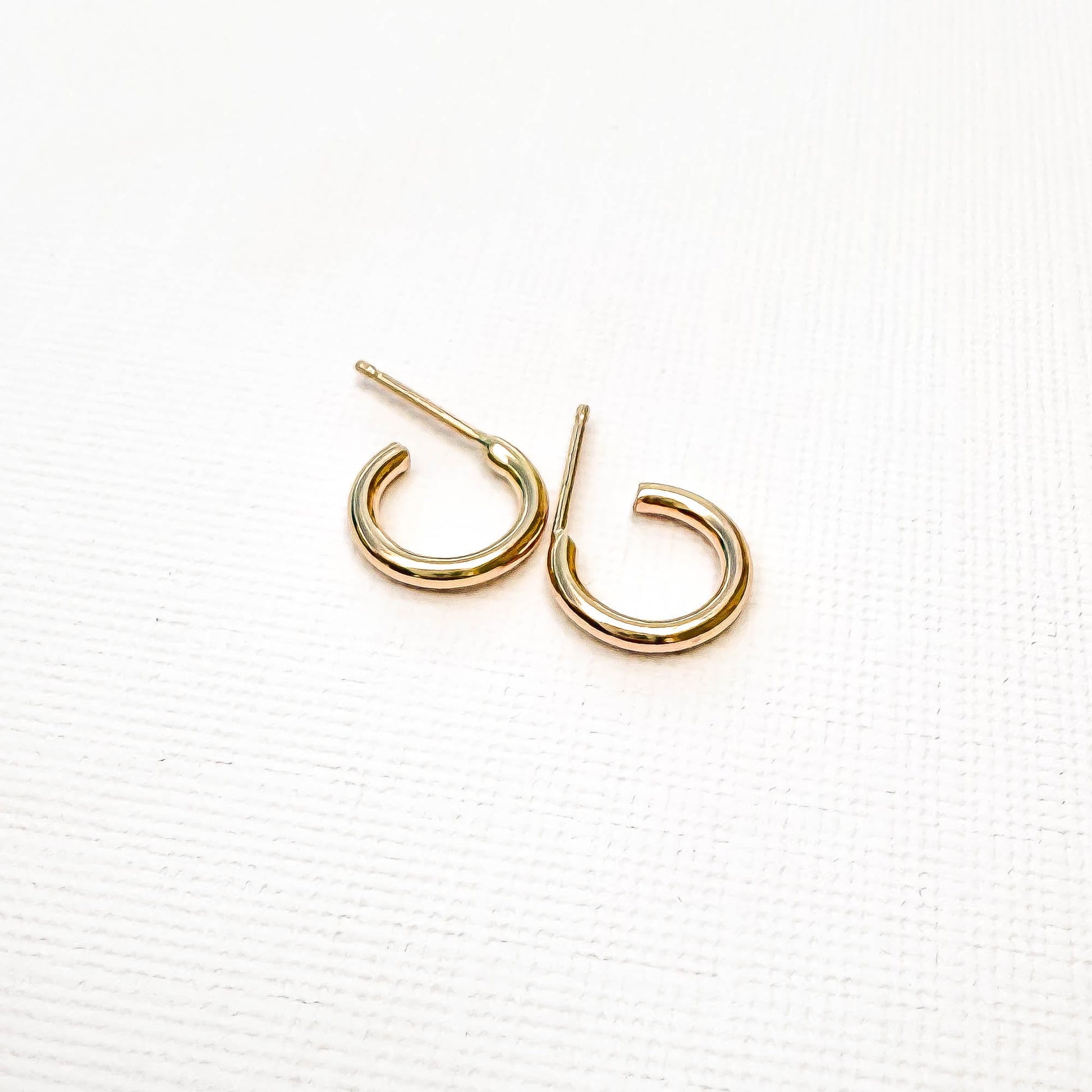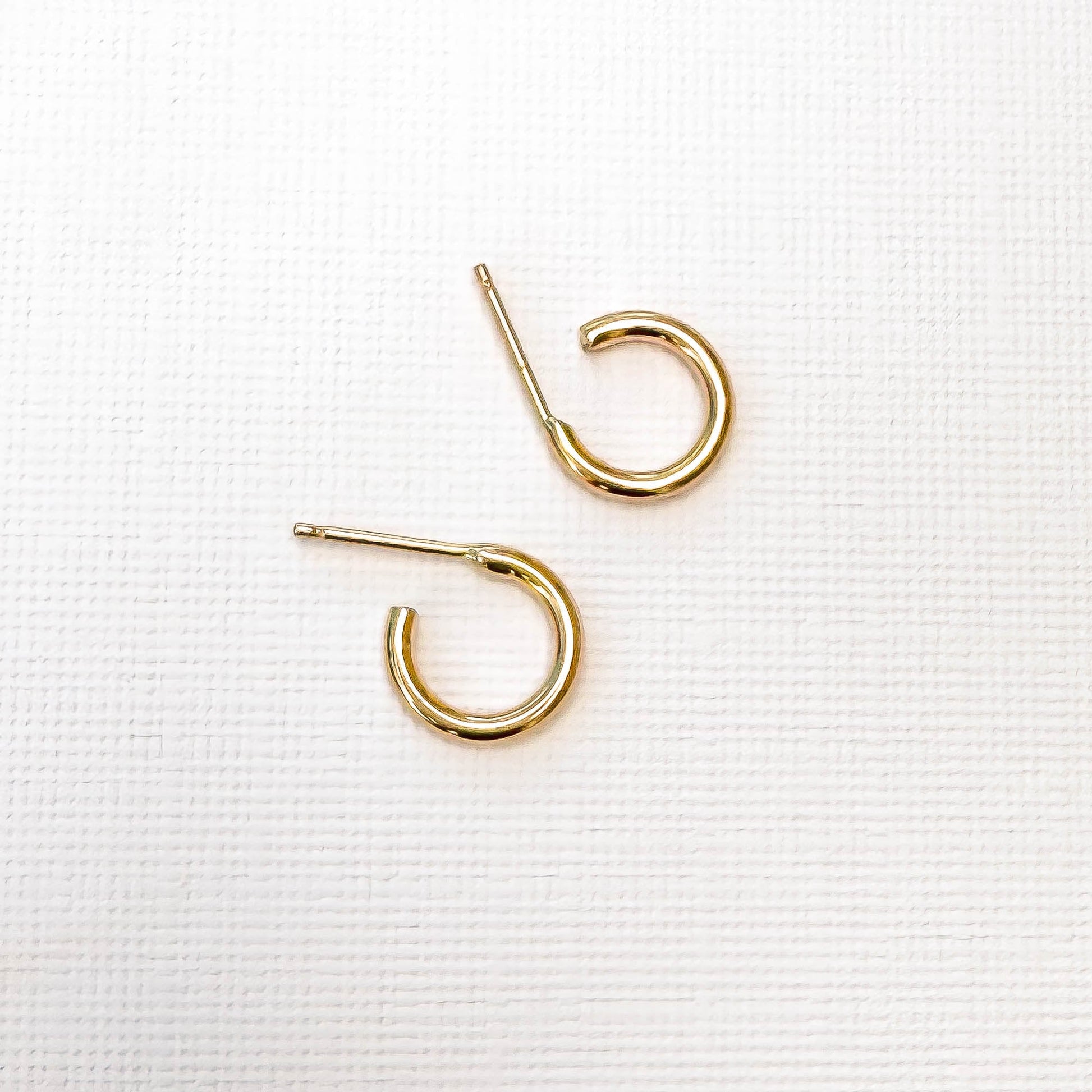 • Hand crafted 16 gauge round hoop earrings in 14K gold filled. 11mm inner diameter, 14.5mm outer diameter. Earring post is 22 gauge, to easily slip through the ear.