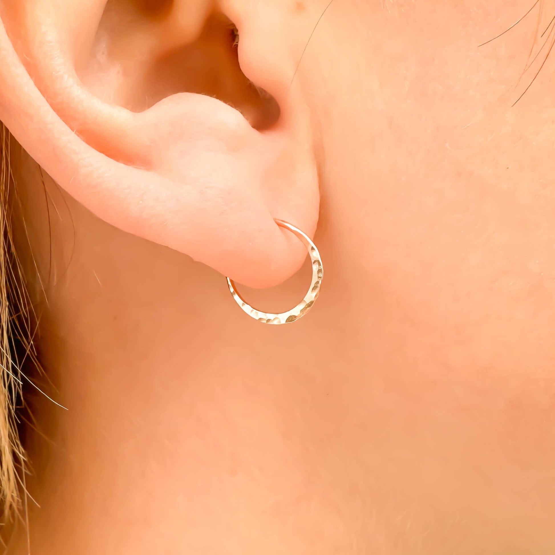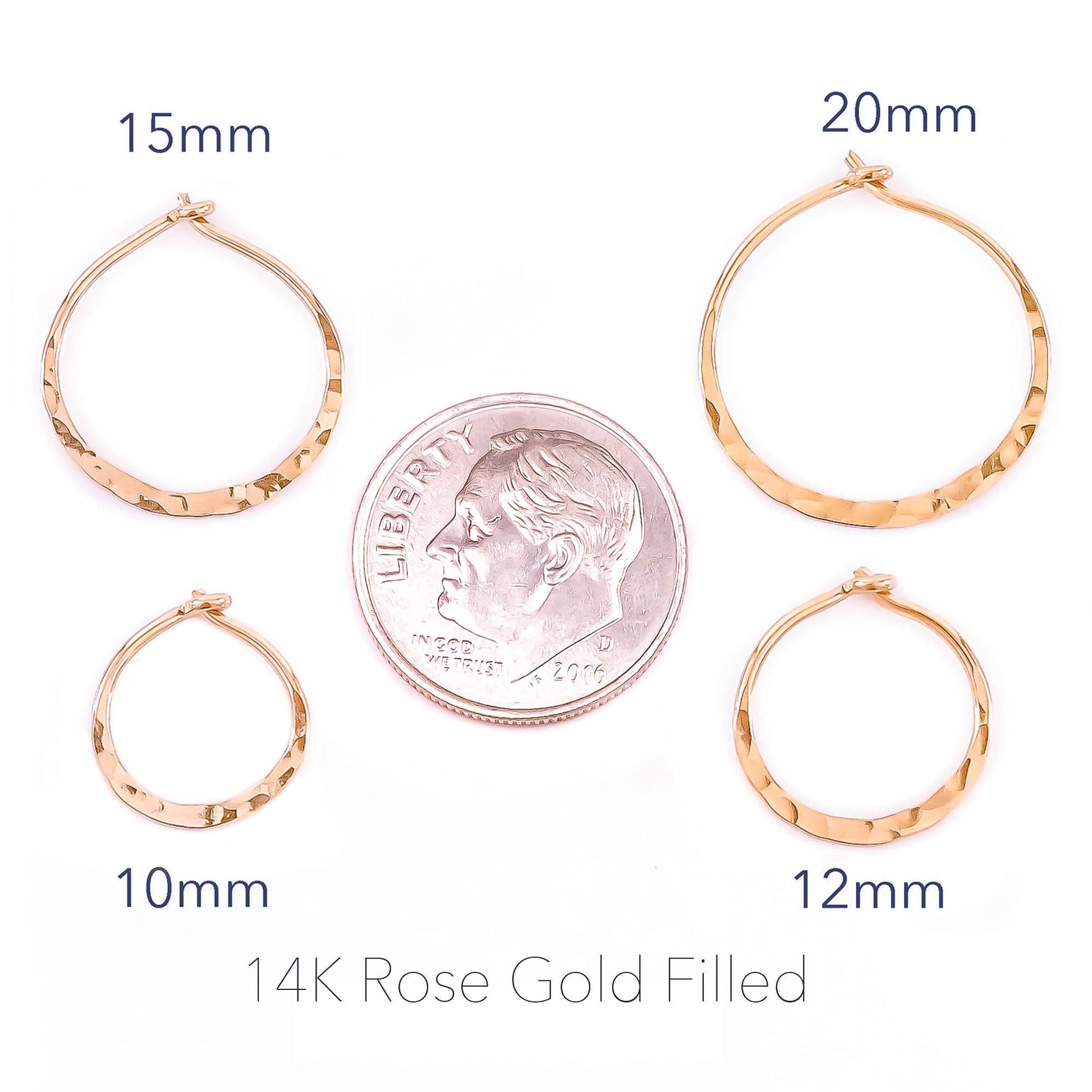 12mm Hammered Hoop Earrings, 14K Rose Gold Filled