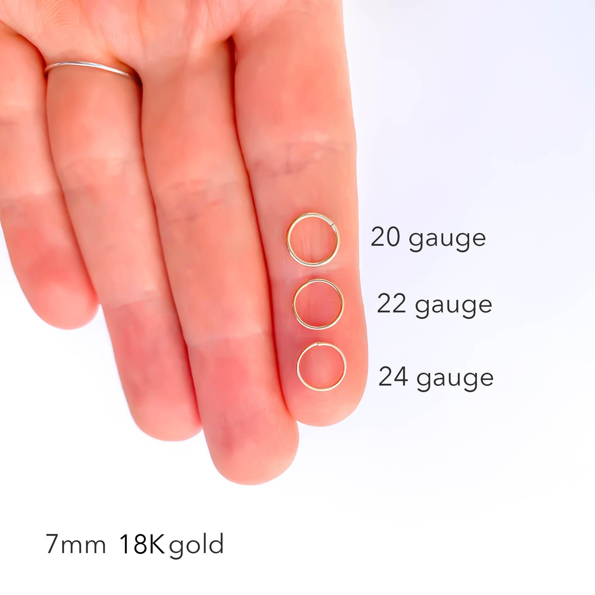 •• 22 gauge (thin). Most popular gauge size, minimalist.
