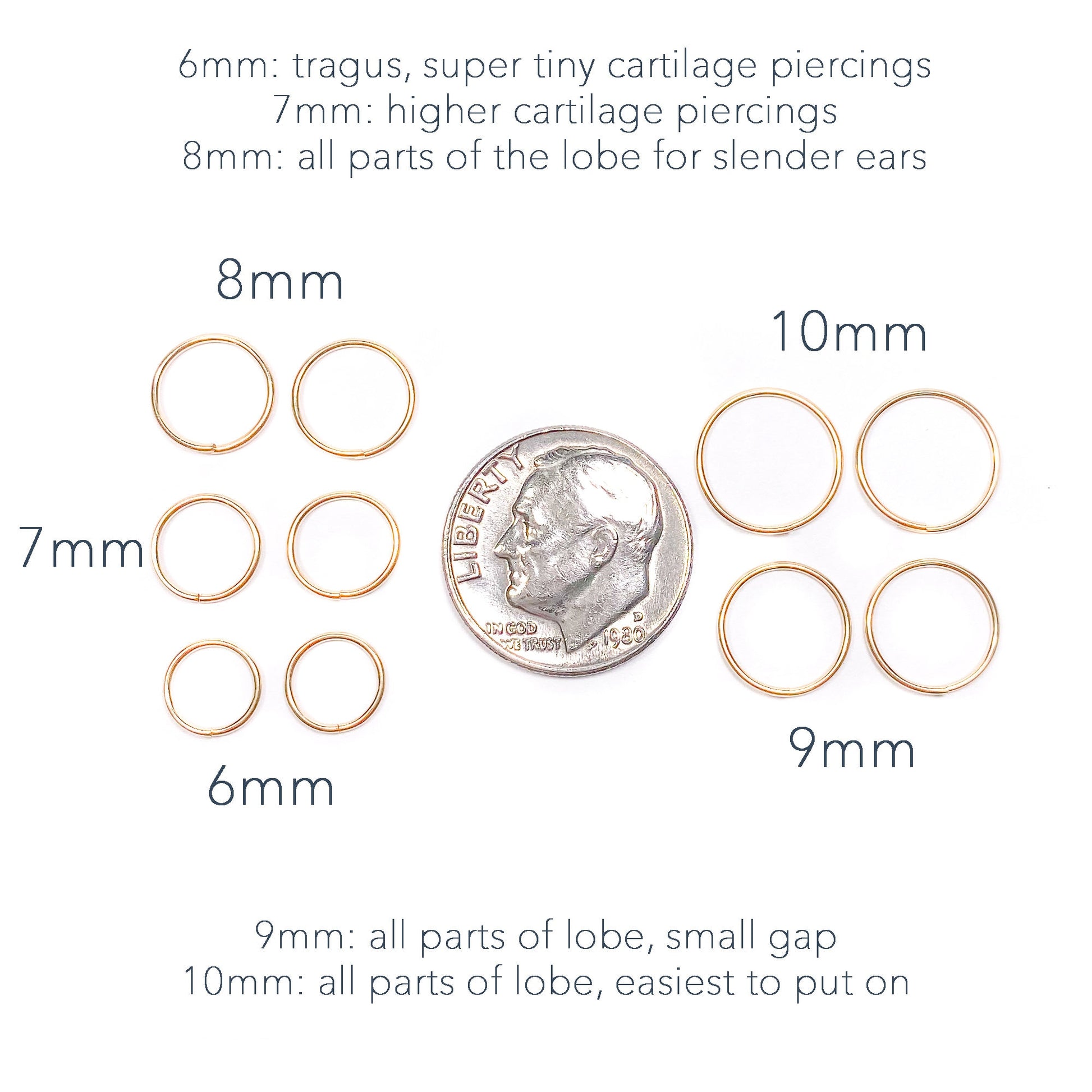 ••7mm: VERY SMALL—usually only for cartilage piercings, or high lobe 2nd or 3rd piercings