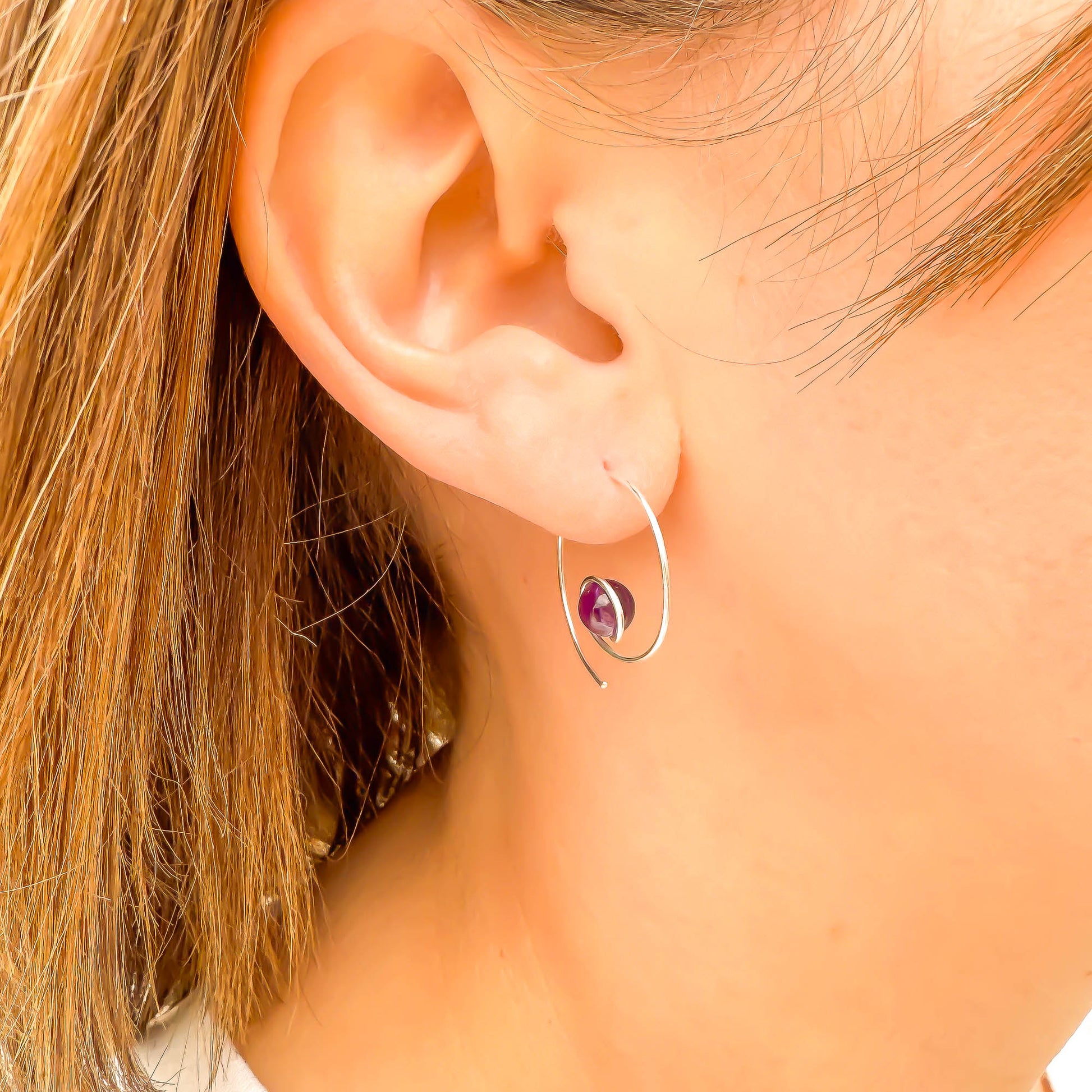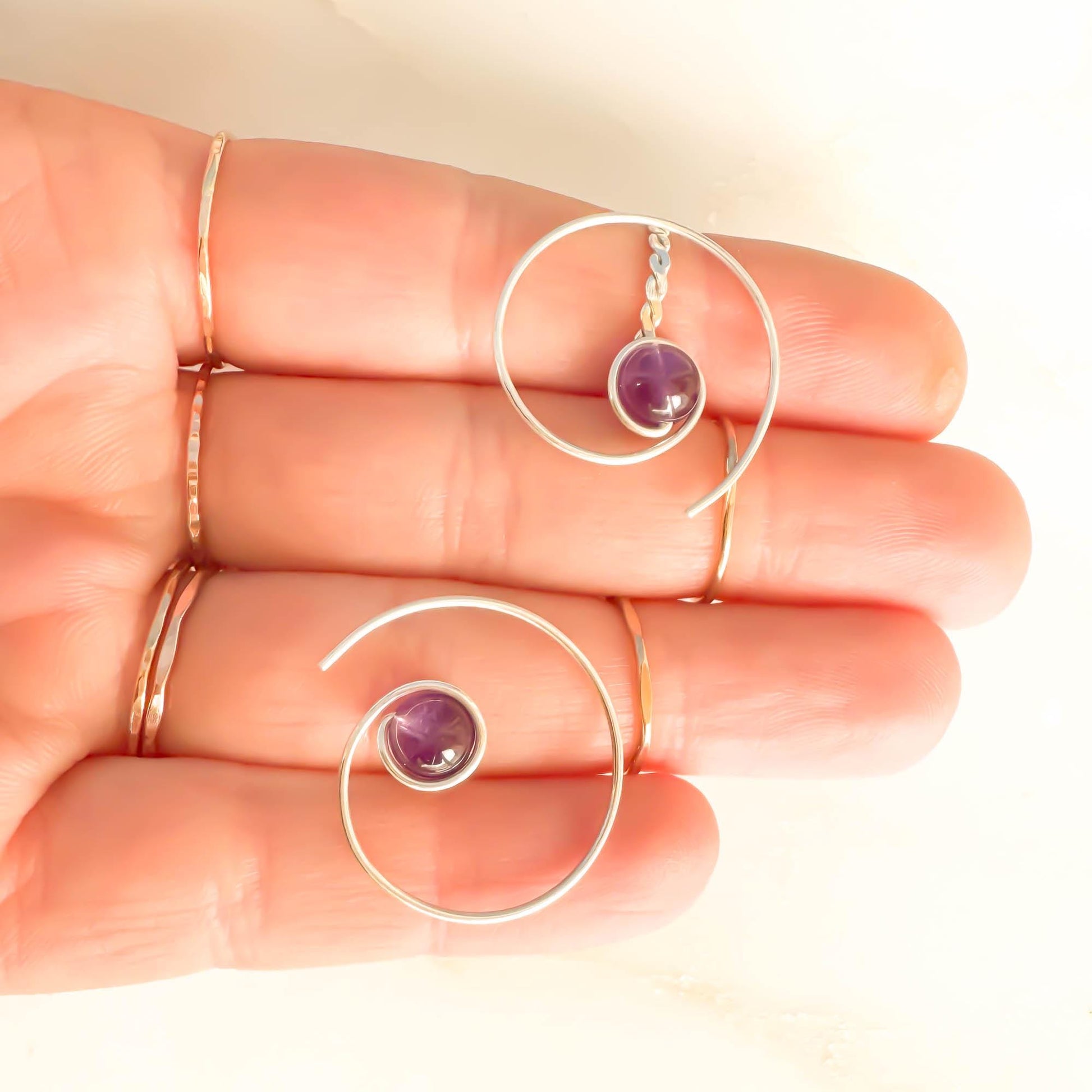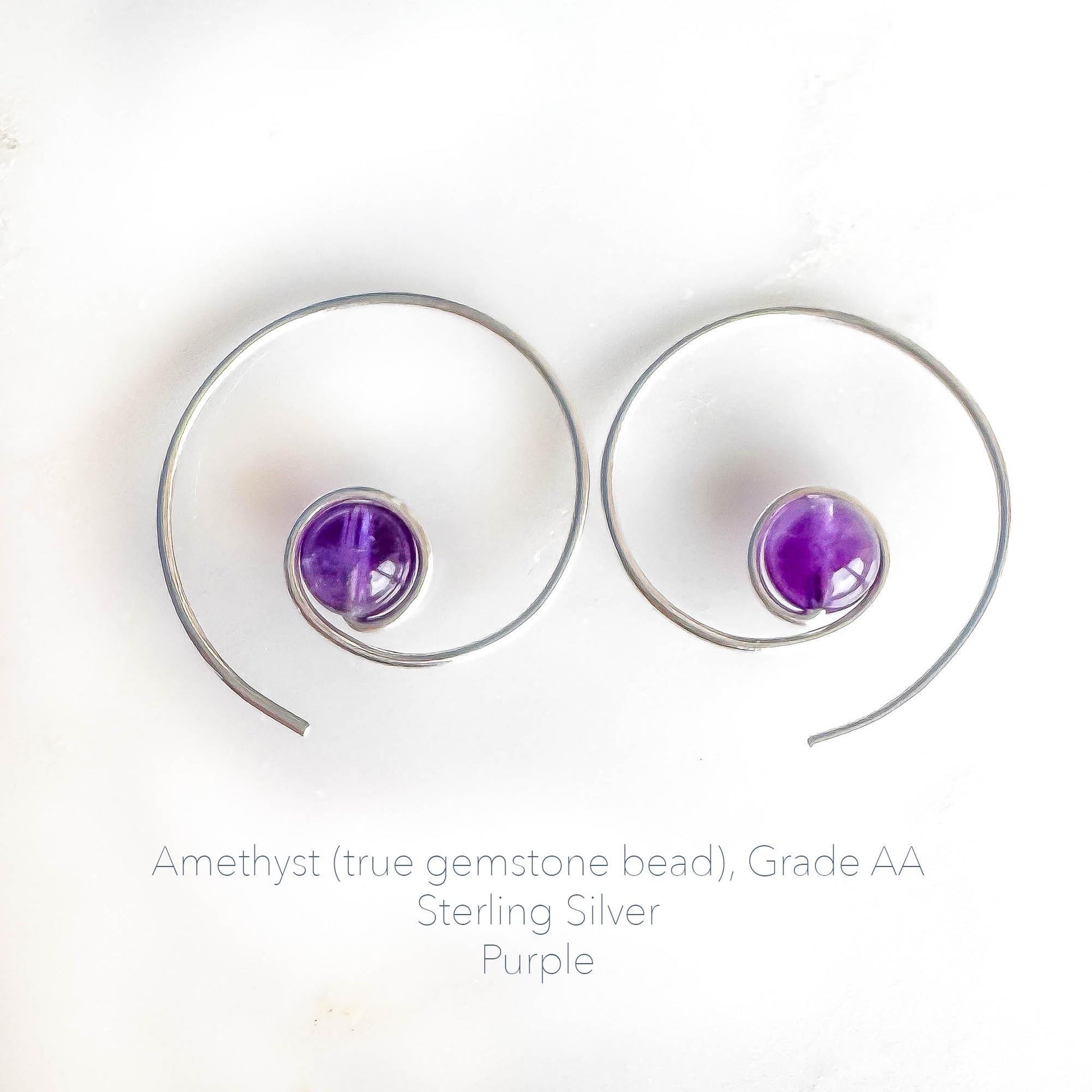 • These handcrafted spiral hoop earrings, feature brilliant 6mm amethyst gemstone beads.