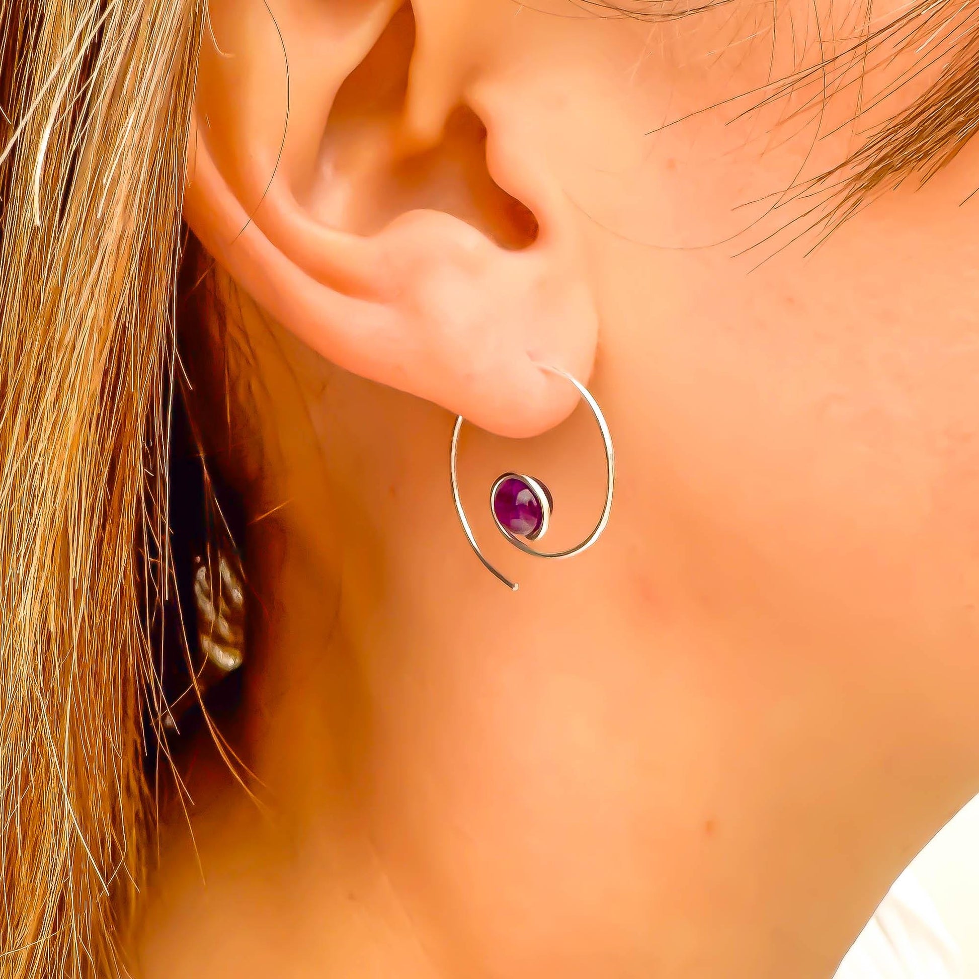 Purple Amethyst Spiral Hoop Earrings, Sterling Silver