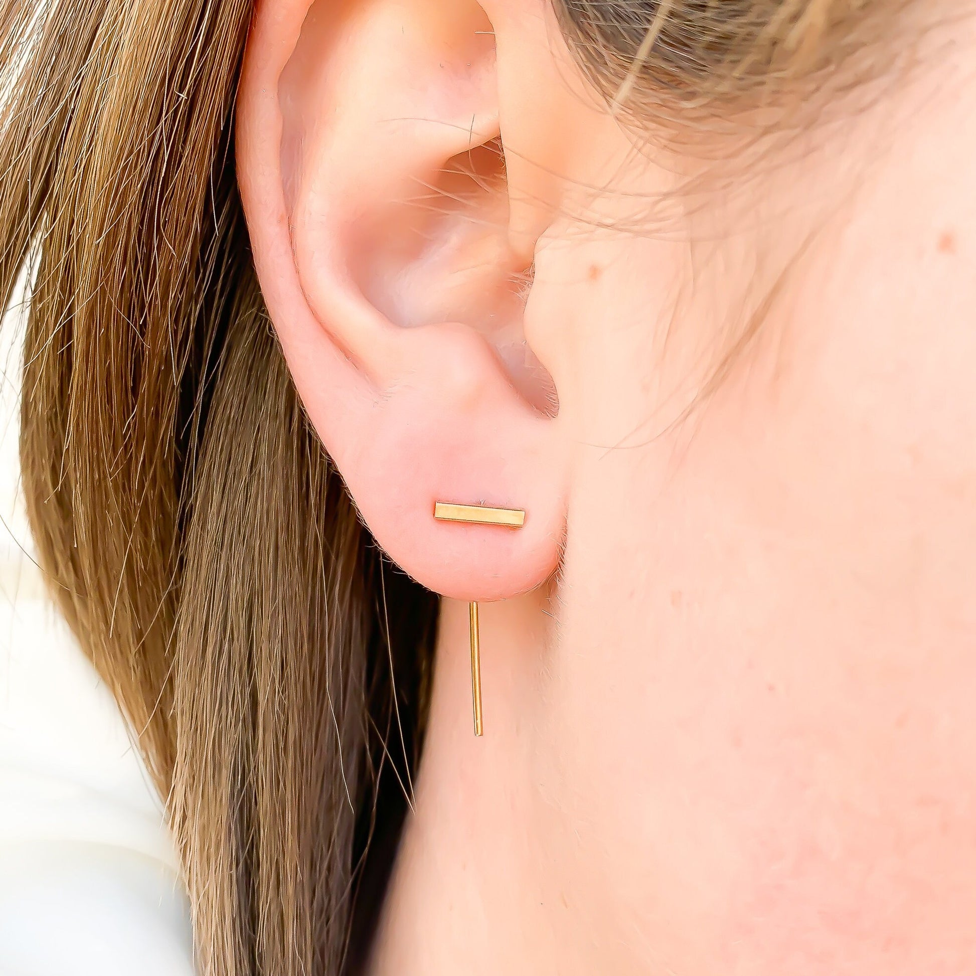 Bar Threader Earrings, 14K Gold Filled