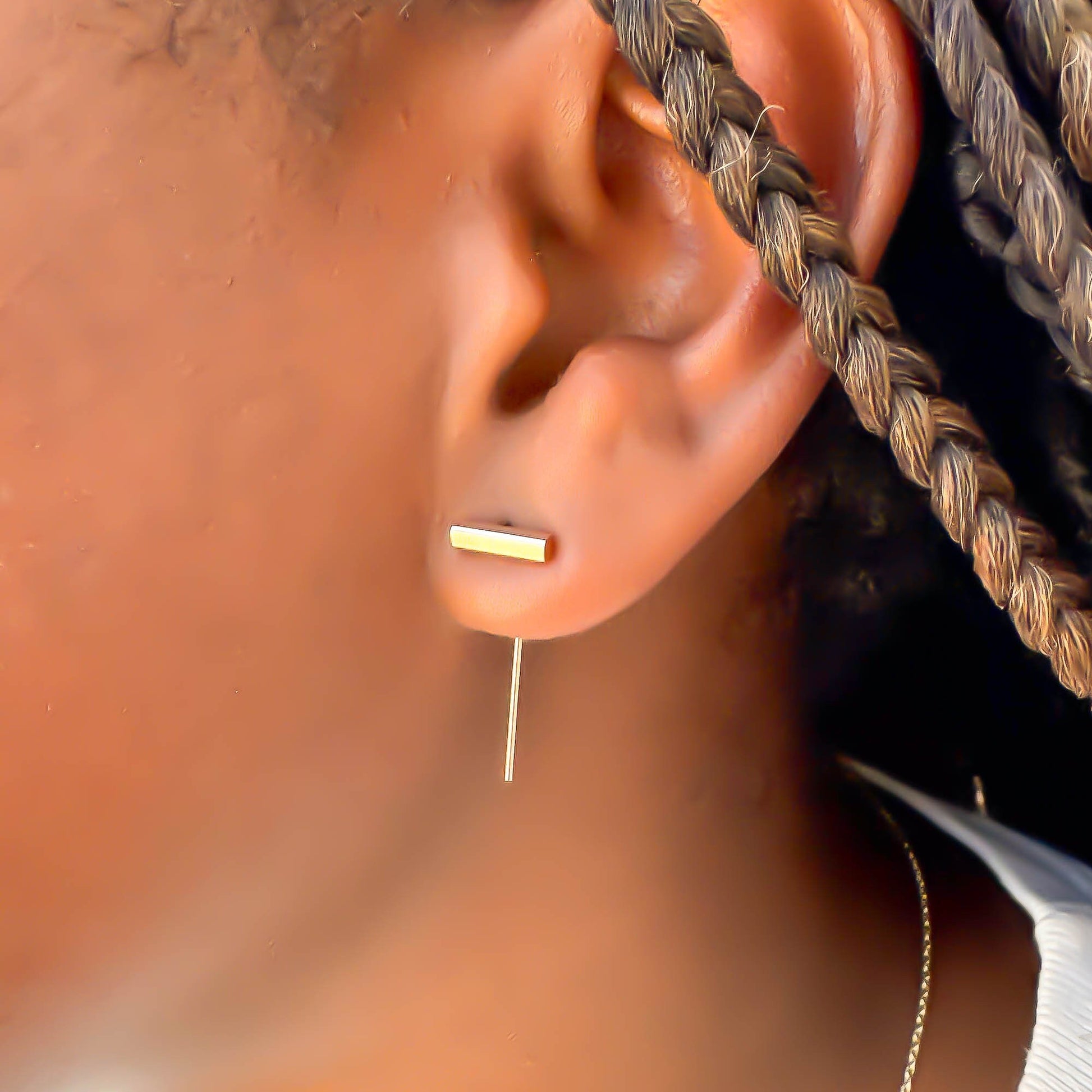 • 14K gold filled square bar threader earrings.