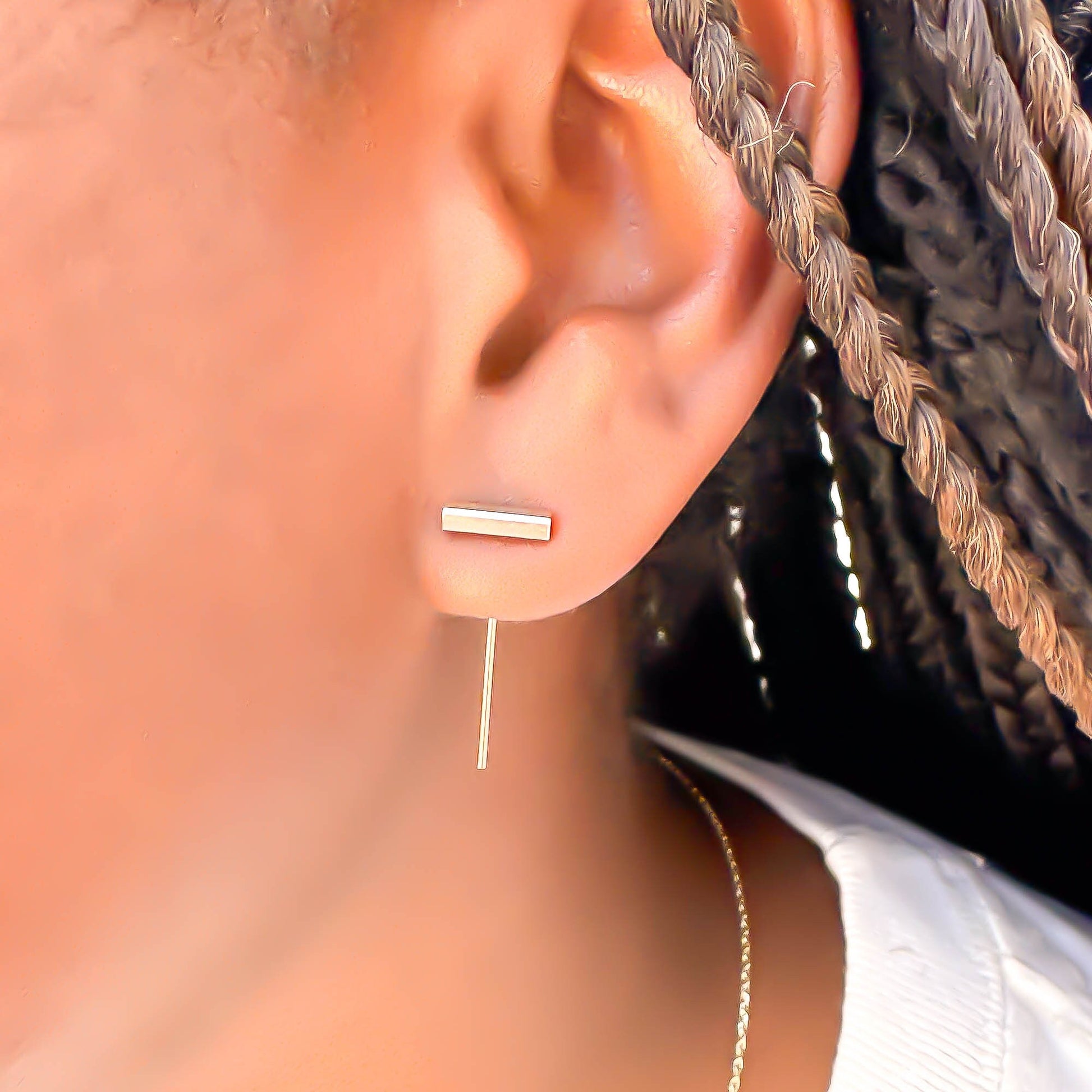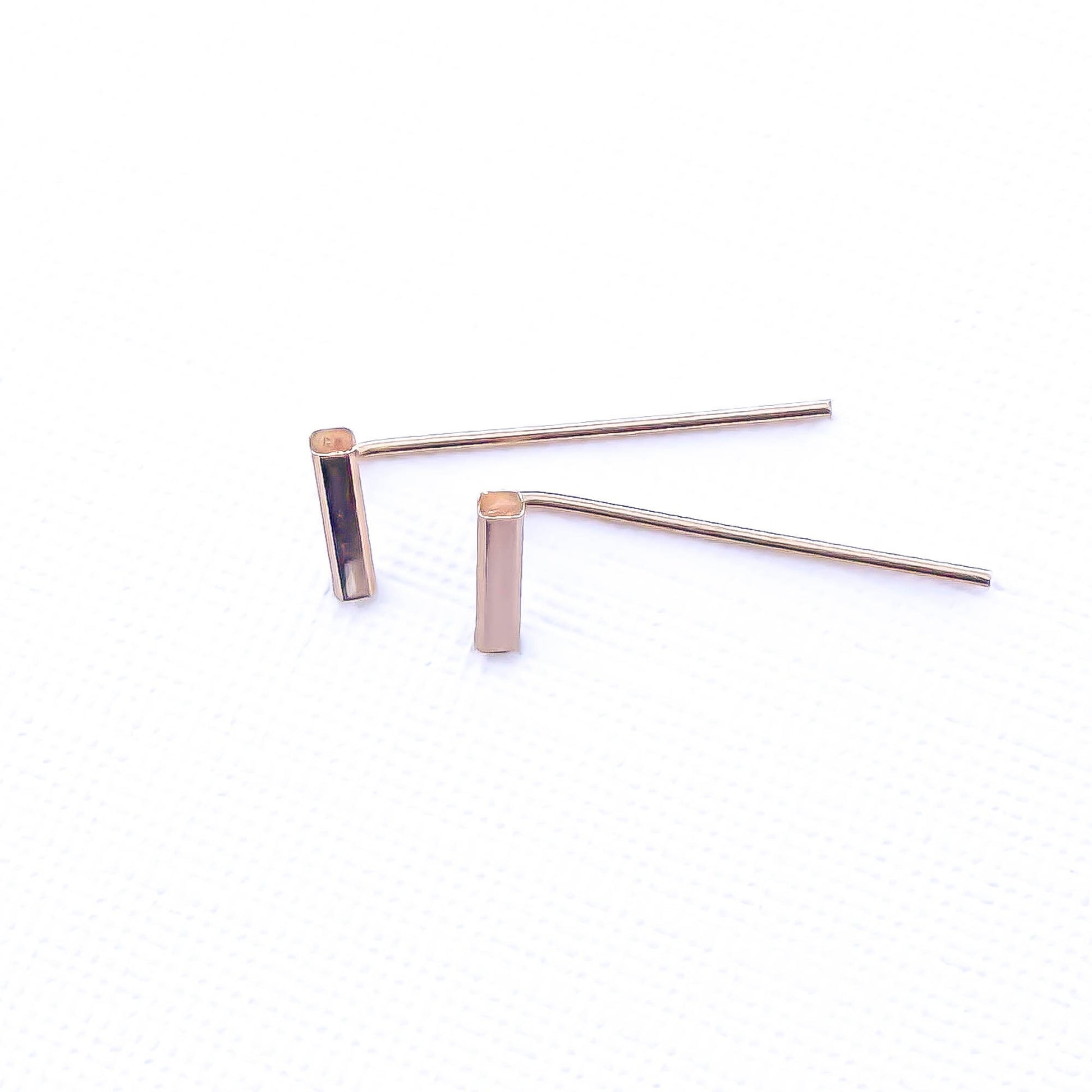 • 14K rose gold filled square bar threader earrings.