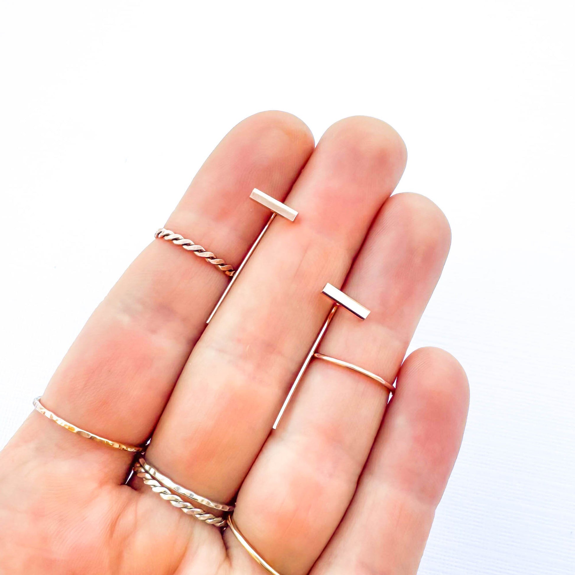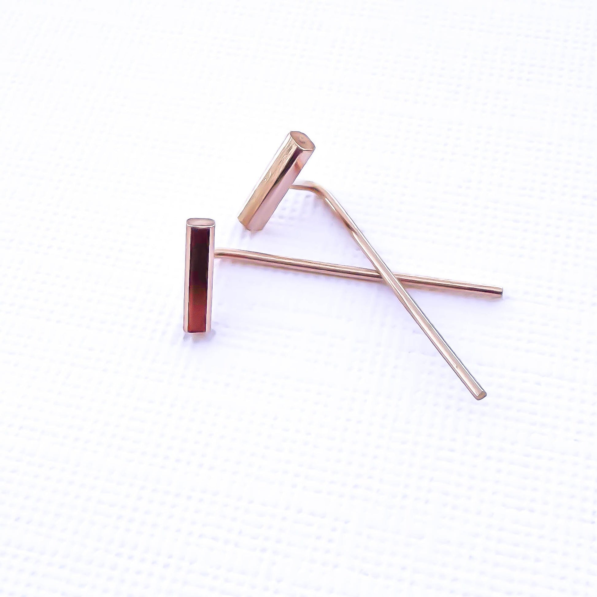 Bar Threader Earrings, 14K Rose Gold Filled
