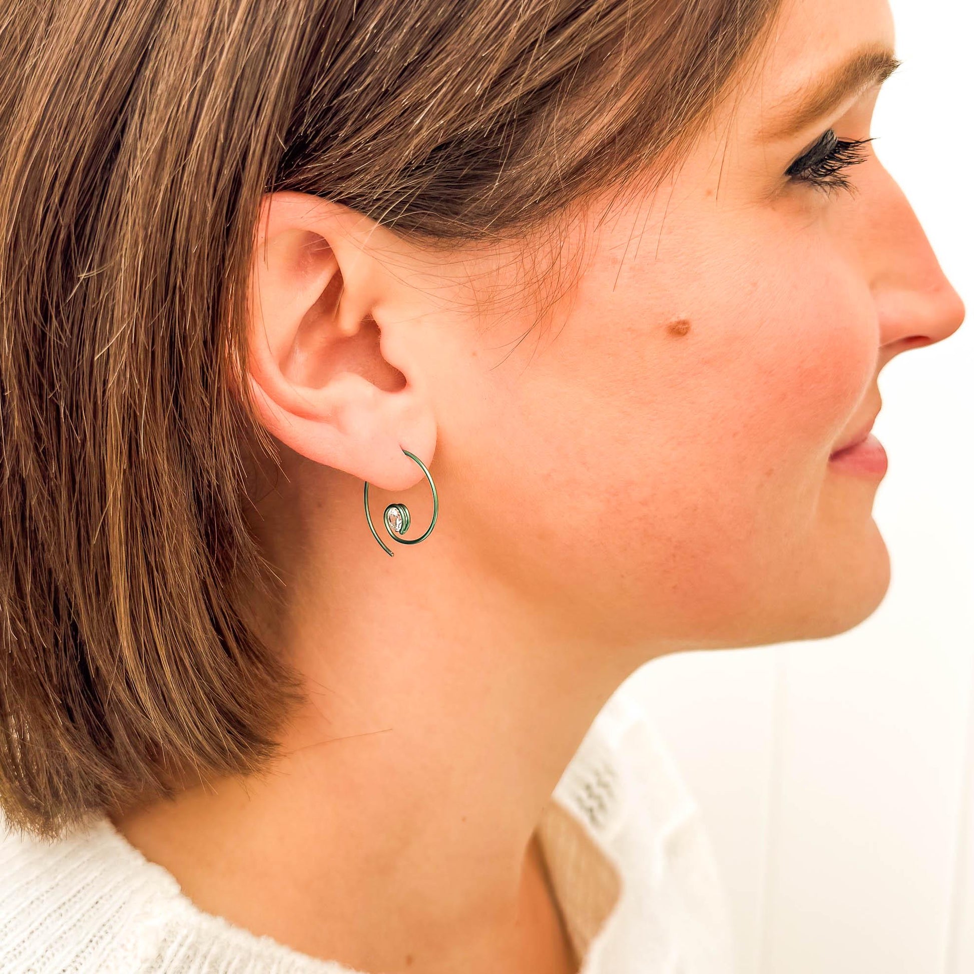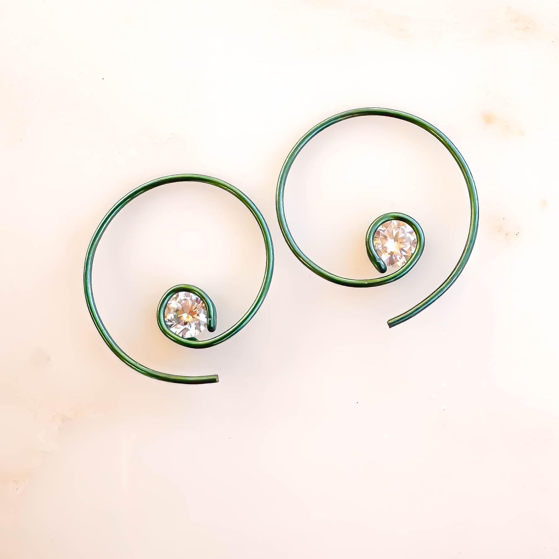 Green Threader CZ Spiral Hoop Earrings, Niobium