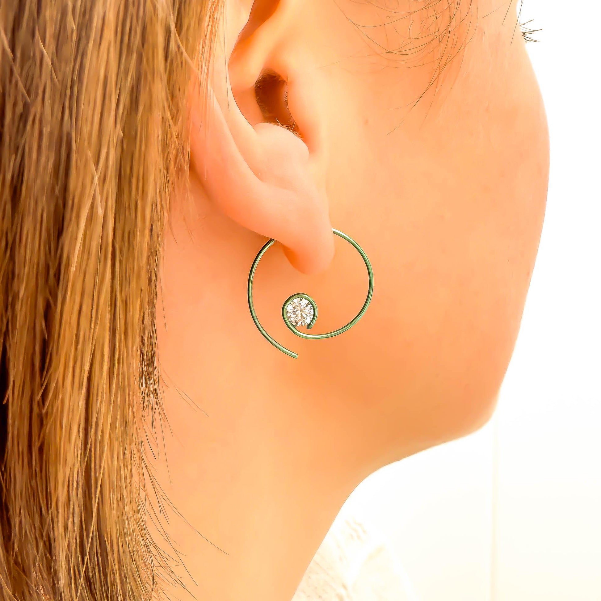 • Handcrafted spiral hoop earrings, with 5mm CZ (cubic zirconia) simulated diamonds.