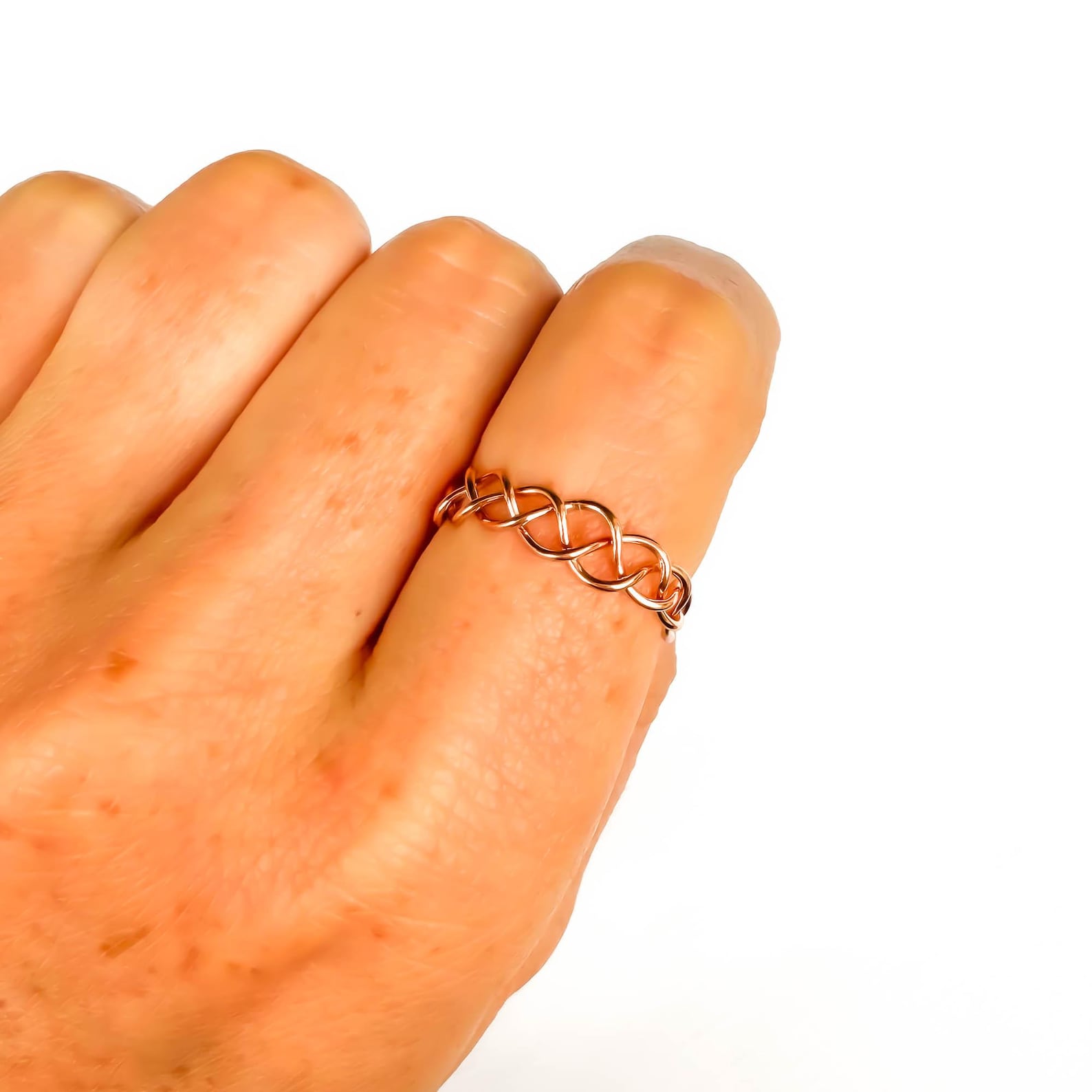 • 4mm wide, 3 strands of 20 gauge round wire, hand braided out of 14K rose gold filled, and soldered in the back.