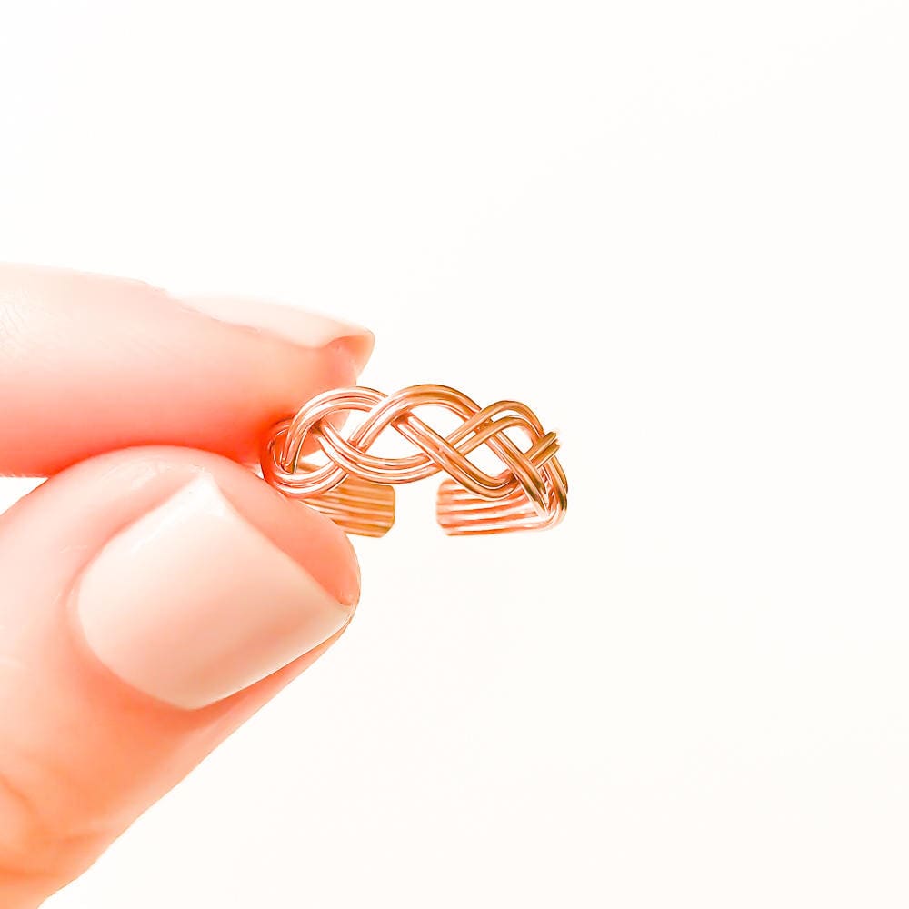 • 5mm wide, 22 gauge round wire, hand braided out of 14K rose gold-filled.