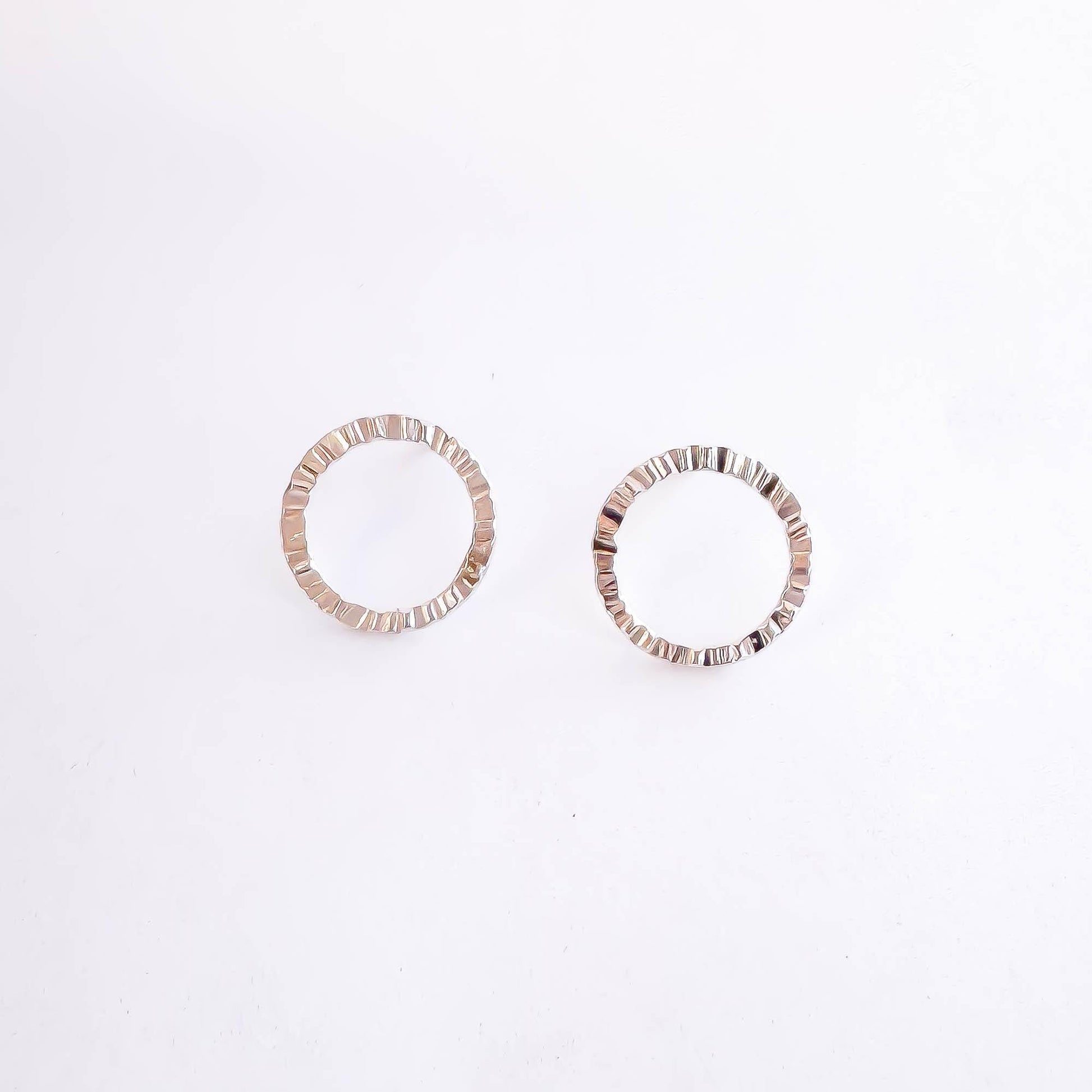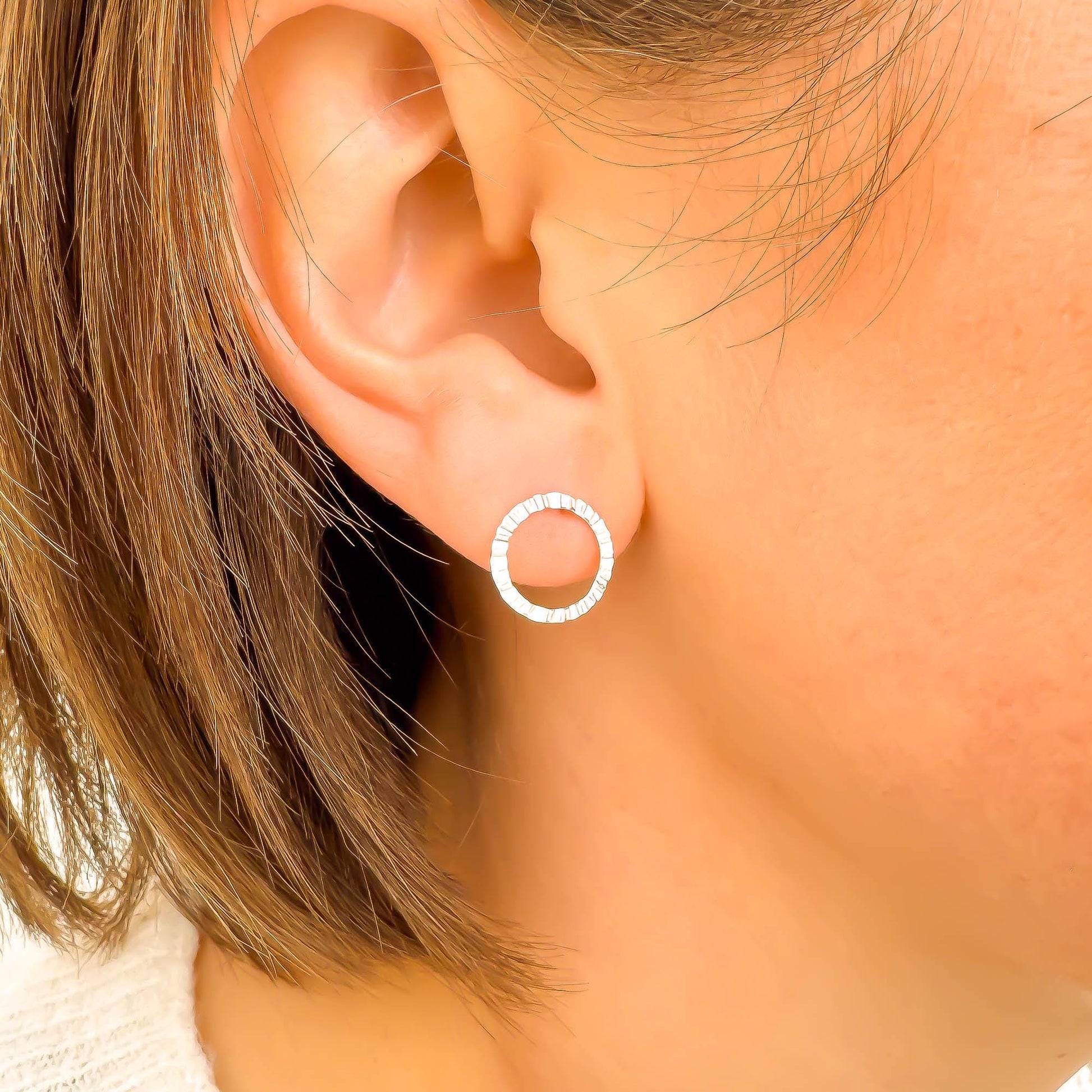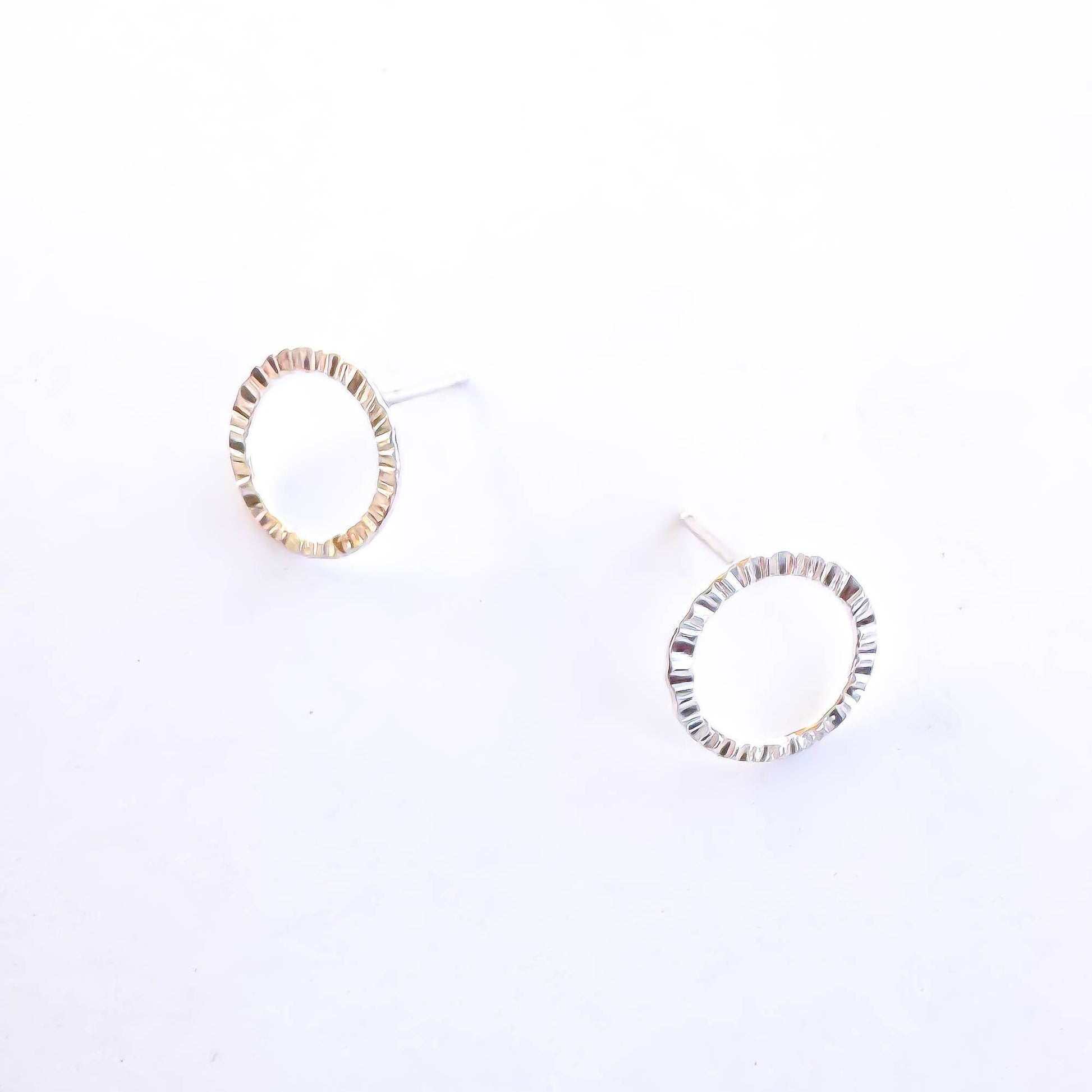 • Pair of open circle stud earrings made of sterling silver. Also available in 14K gold filled.