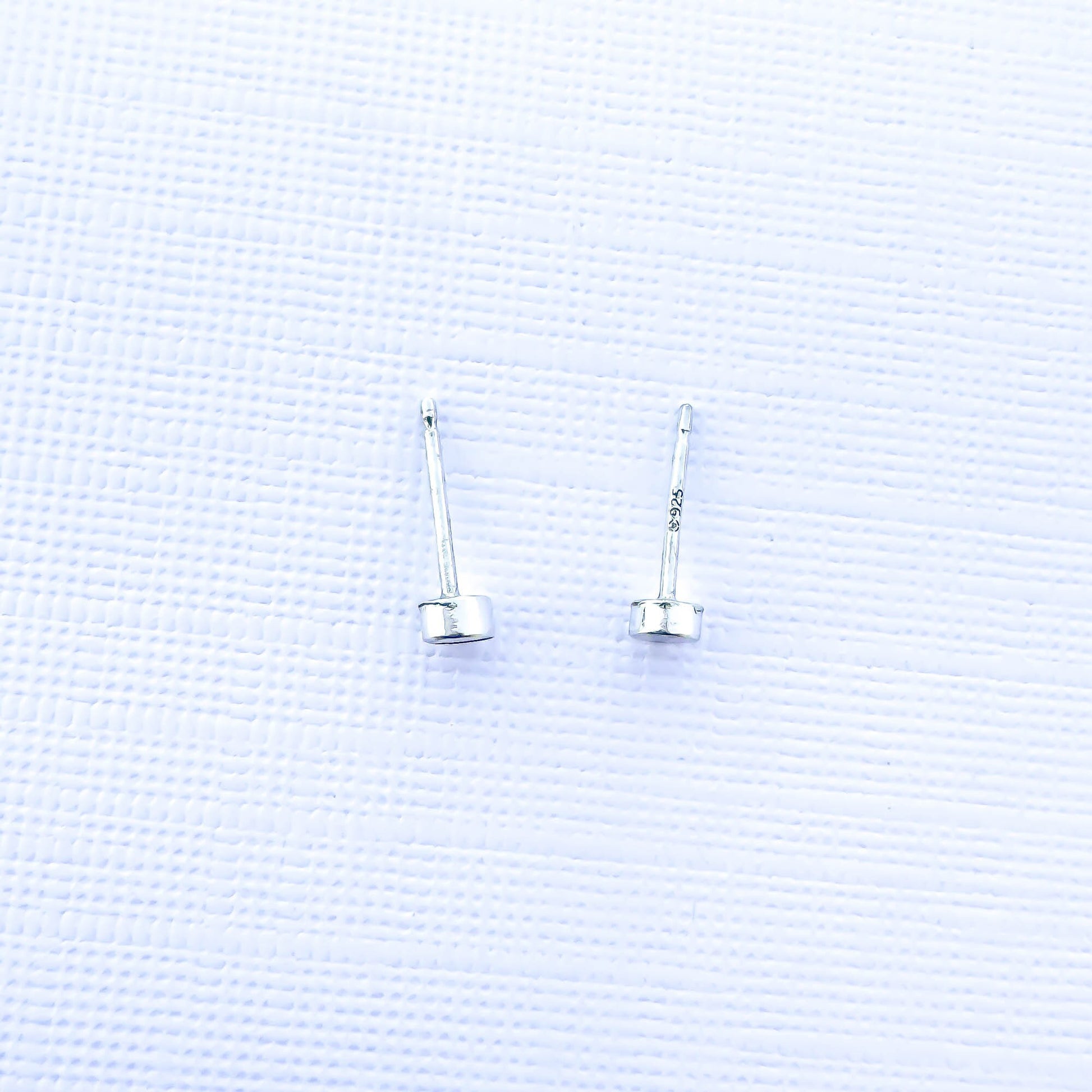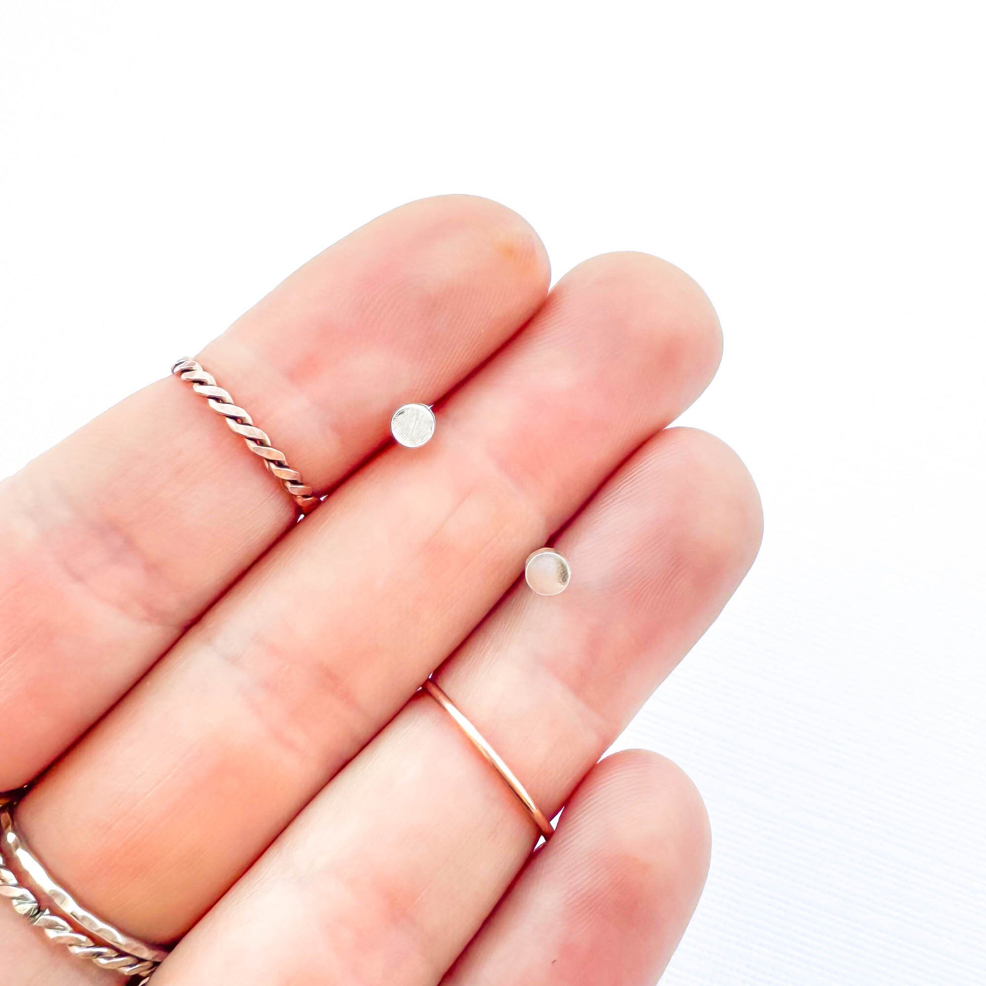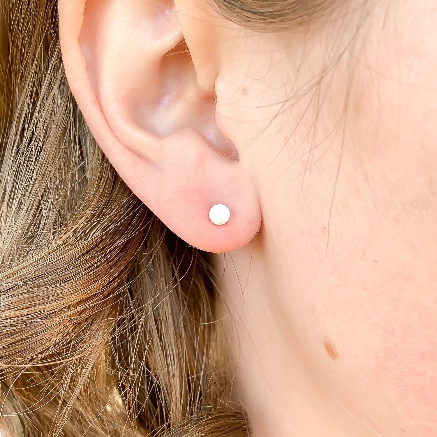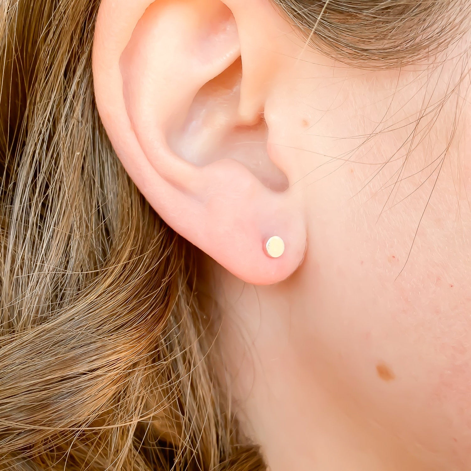 • Sterling silver circle stud earrings, 4mm across, 2mm thick.