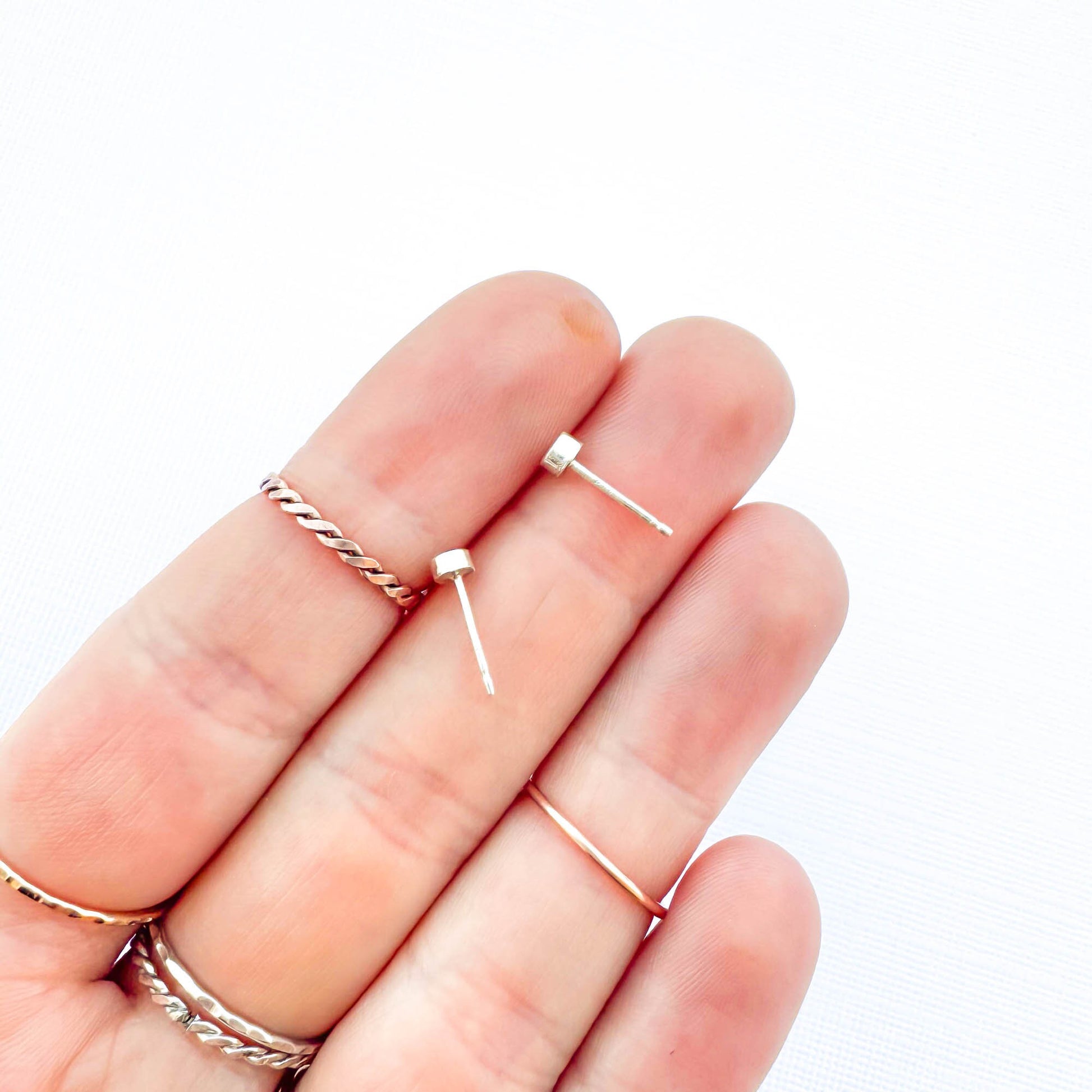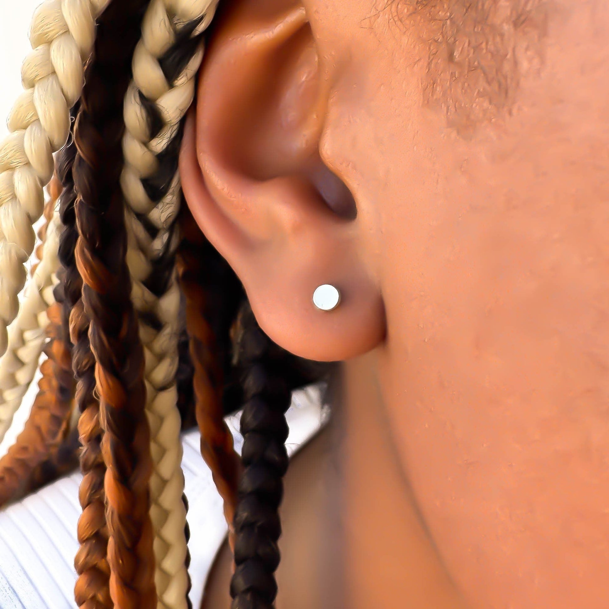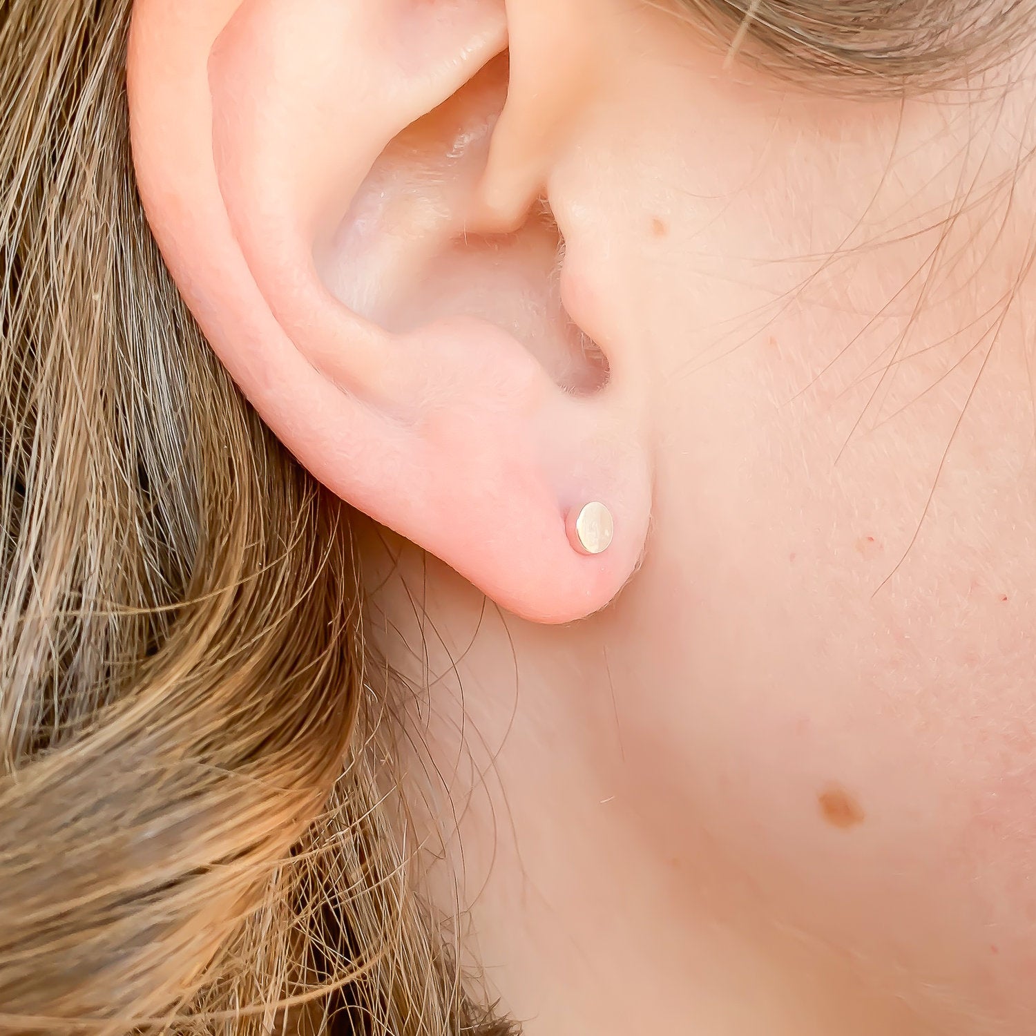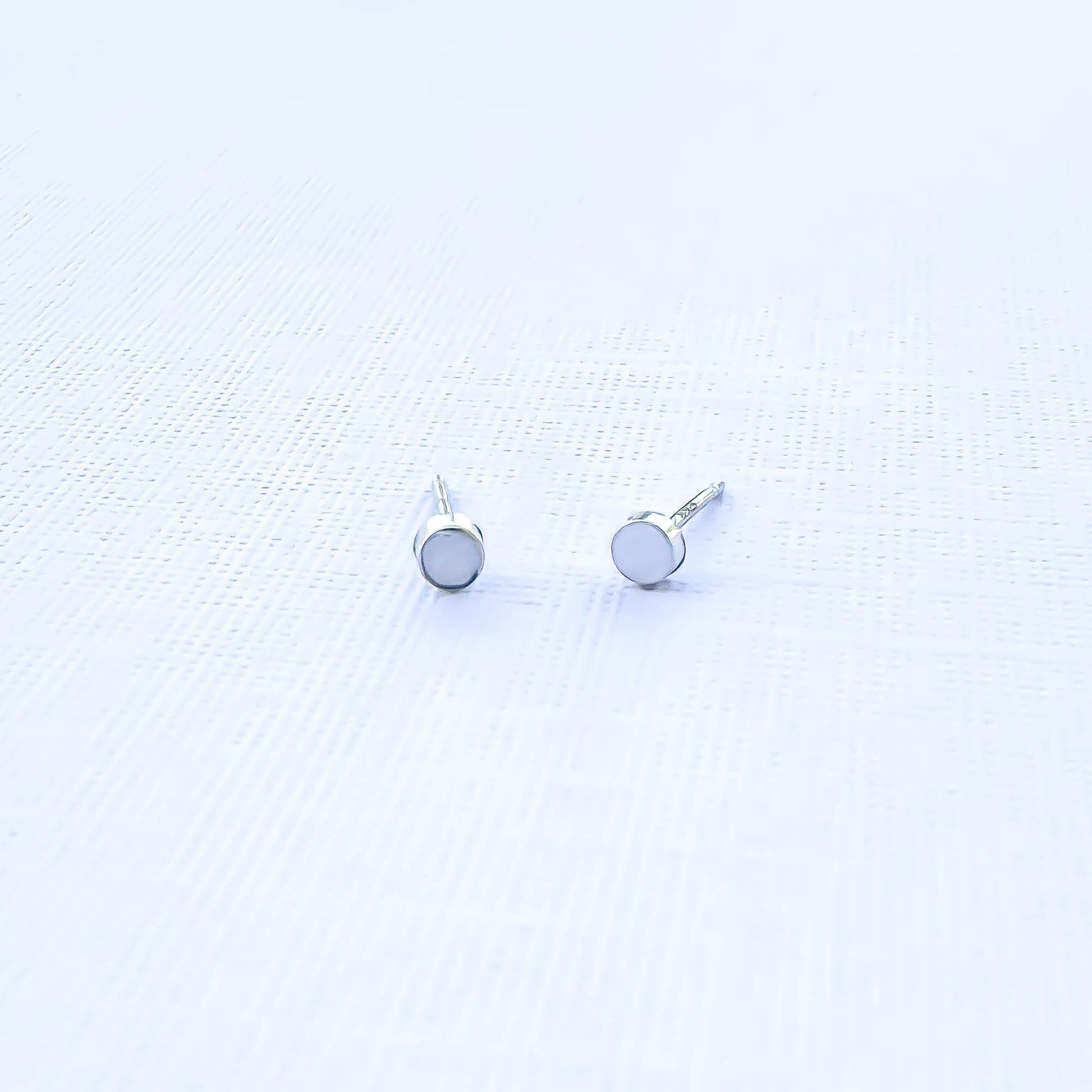 • Sterling silver circle stud earrings, 4mm across, 2mm thick.