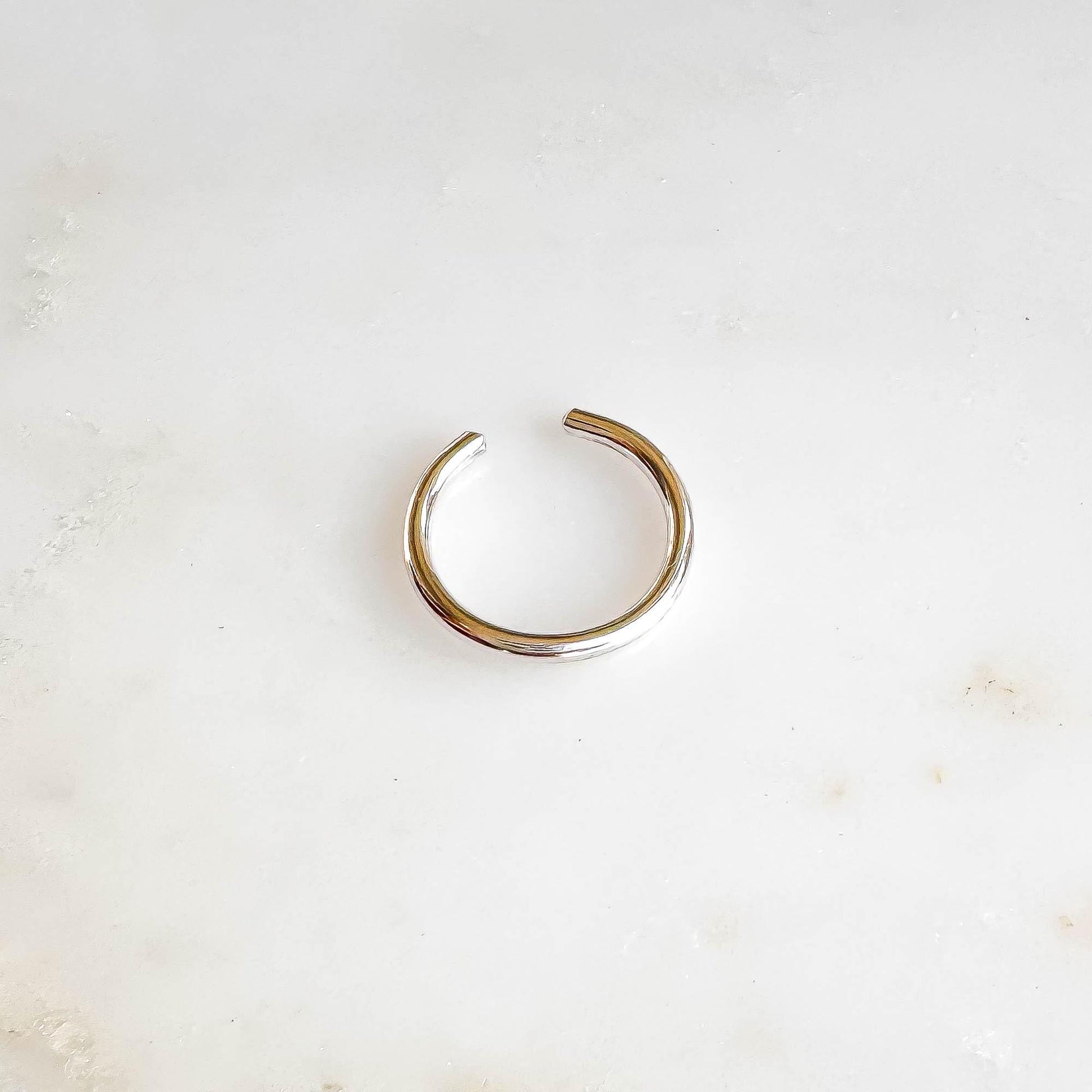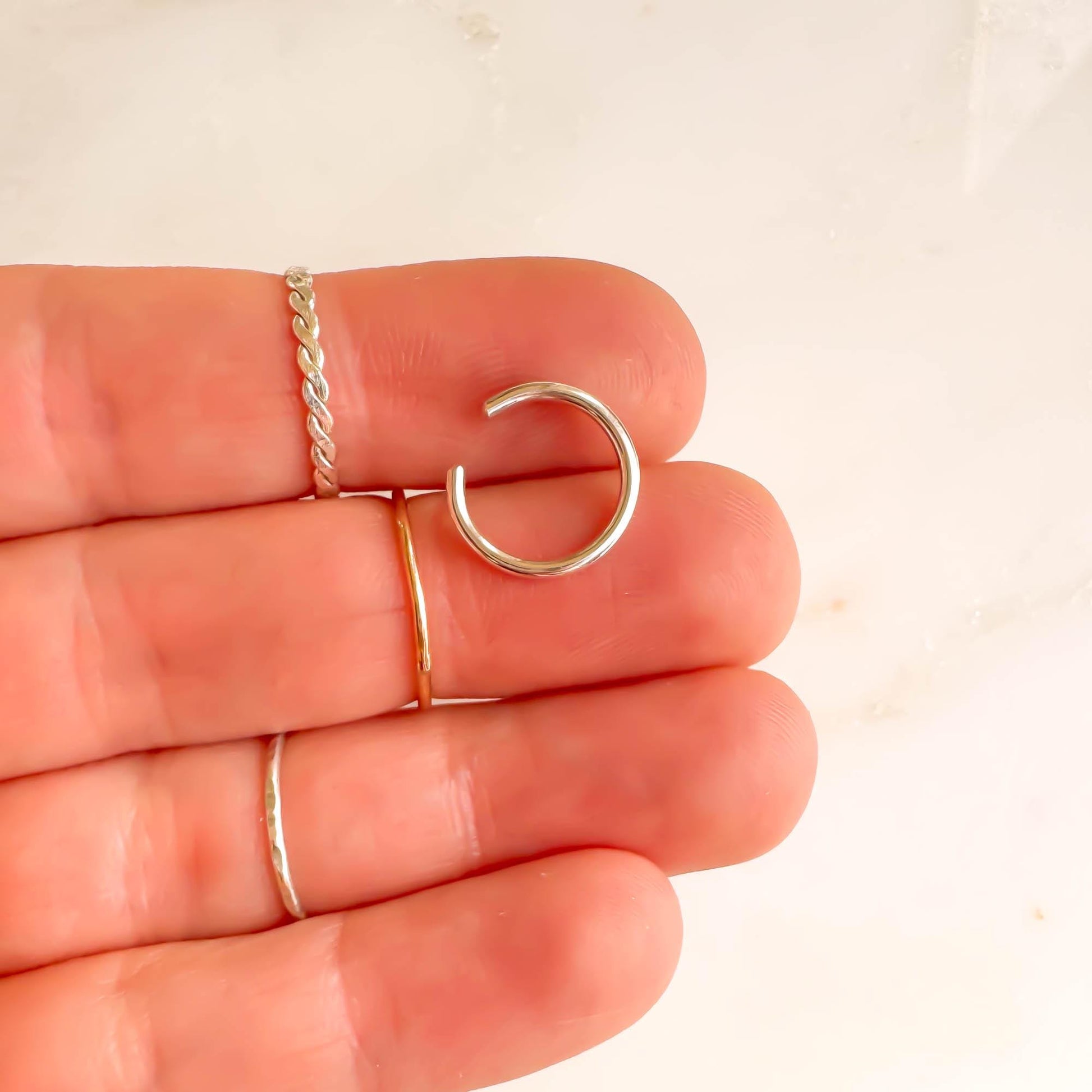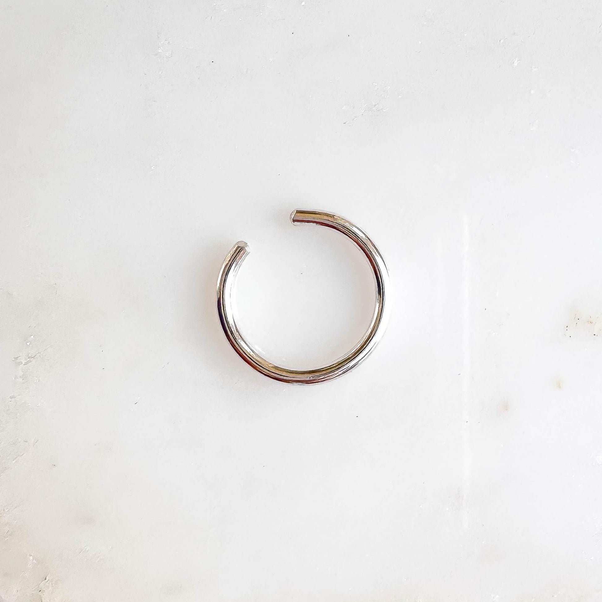 • Sterling silver ear cuff, approx. 12mm in diameter. Meant to sit on the conch of the ear, or lower cartilage.