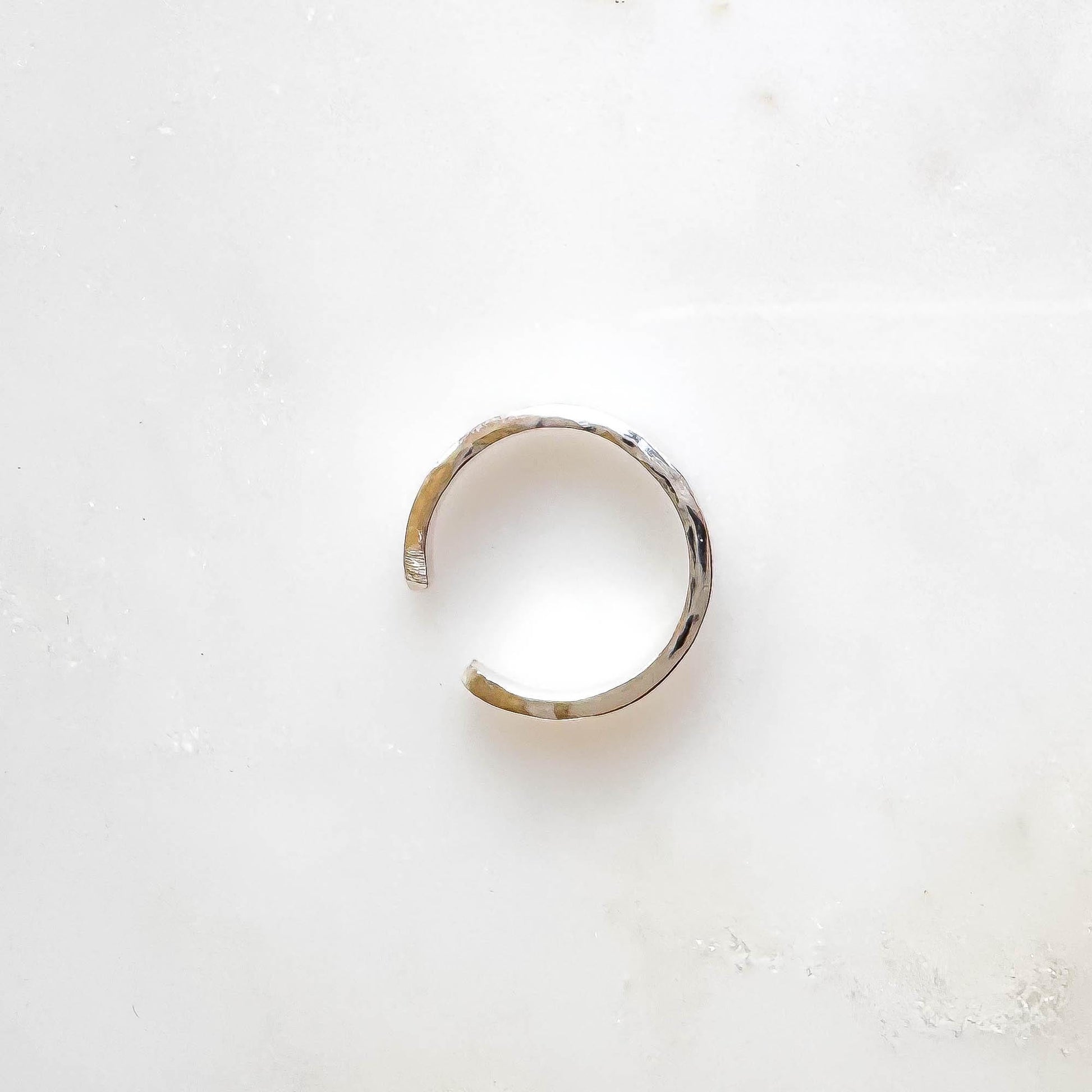 • Sterling silver ear cuff, approx. 12mm in diameter, meant to sit on the lower ear cartilage, or conch of the ear.