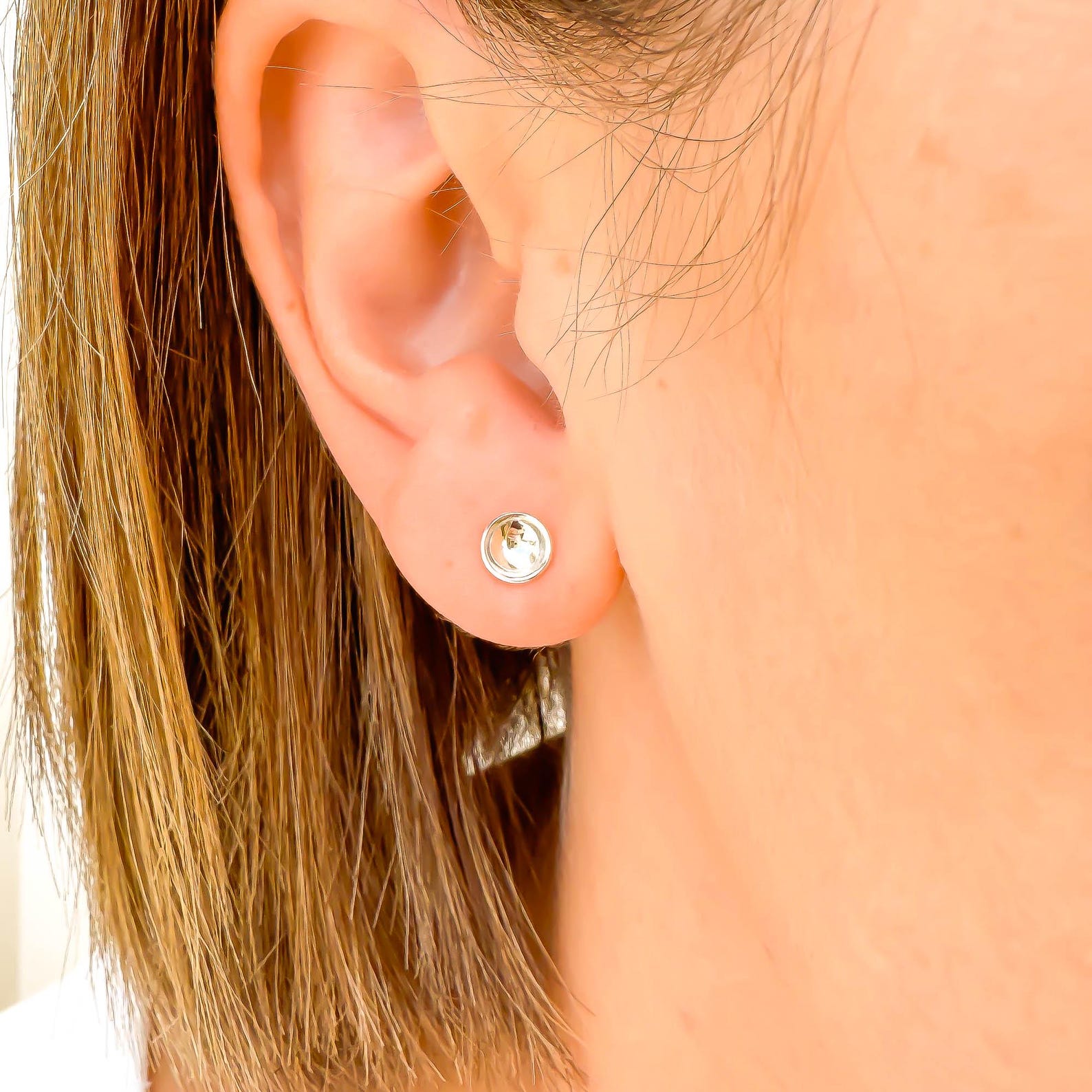 • Silicone: Circular, 3.6mm by 3.3mm hypoallergenic earring backs. No additional cost.