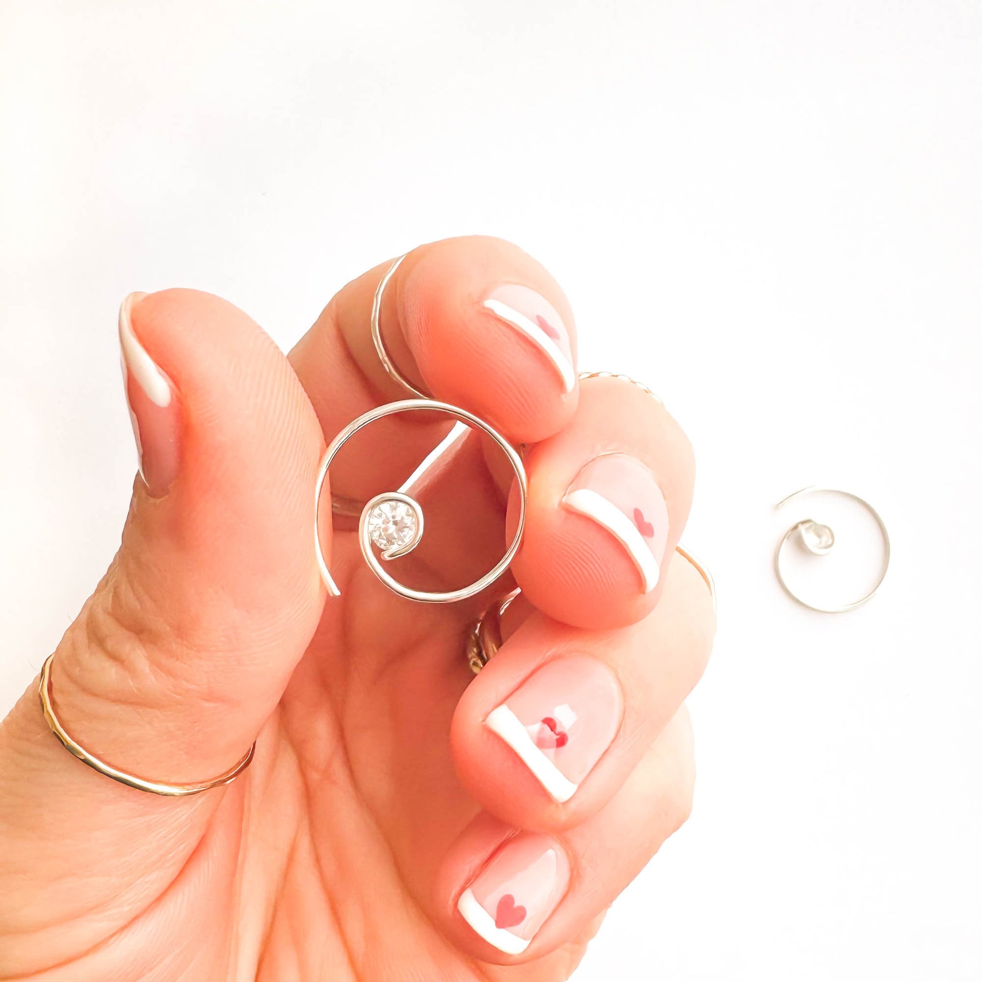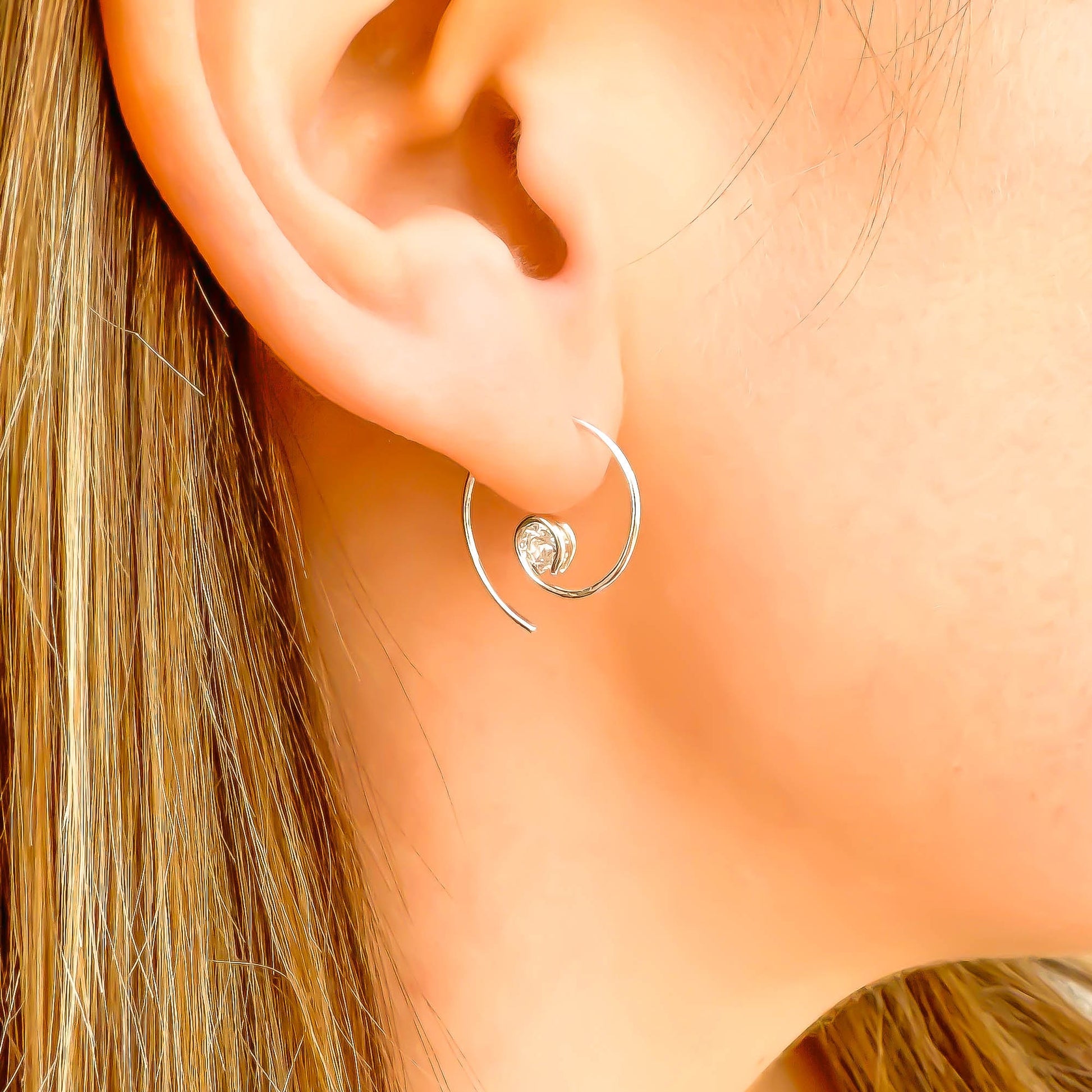 • These are threader earrings, and traditionally don't require earring backs. But for those with active lifestyles, and if you like a secure fit—we do offer 5mm silicone earring backs. Slide/twist on gently, to preserve the earring's shape.