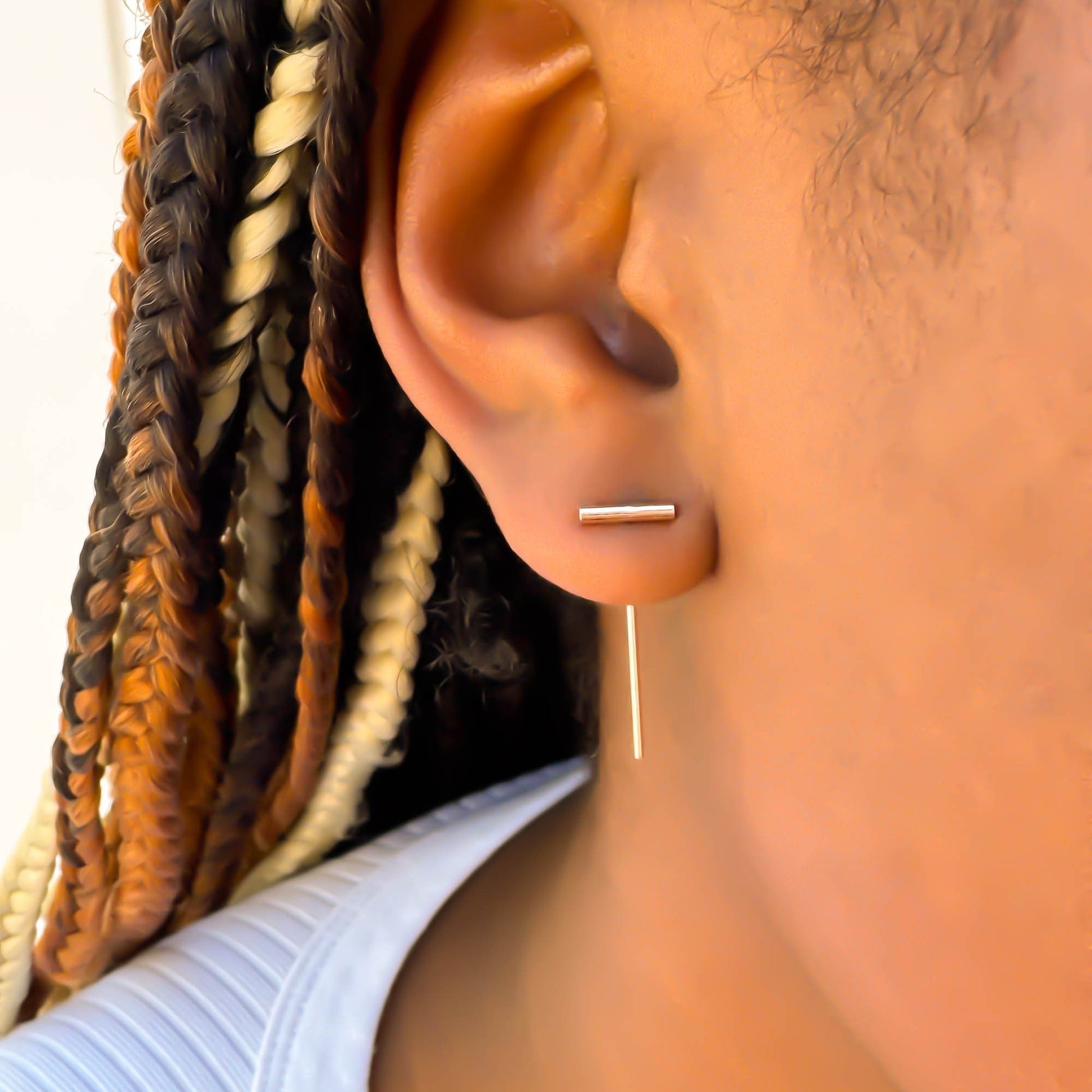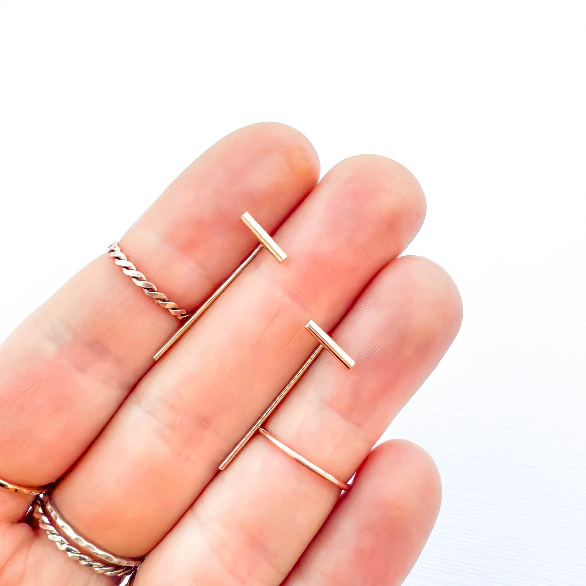 Dainty Round Bar Threader Earrings, 14K Gold Filled