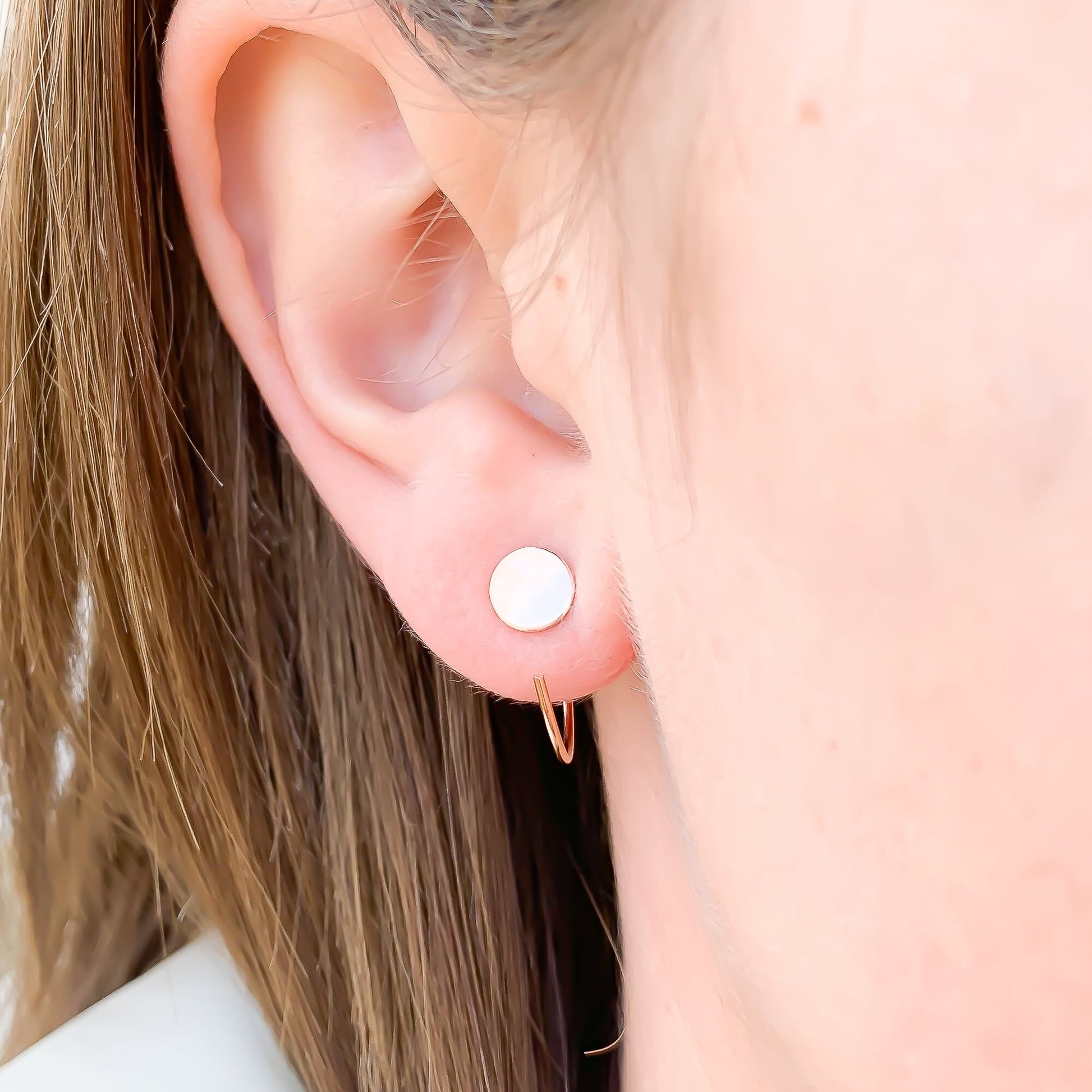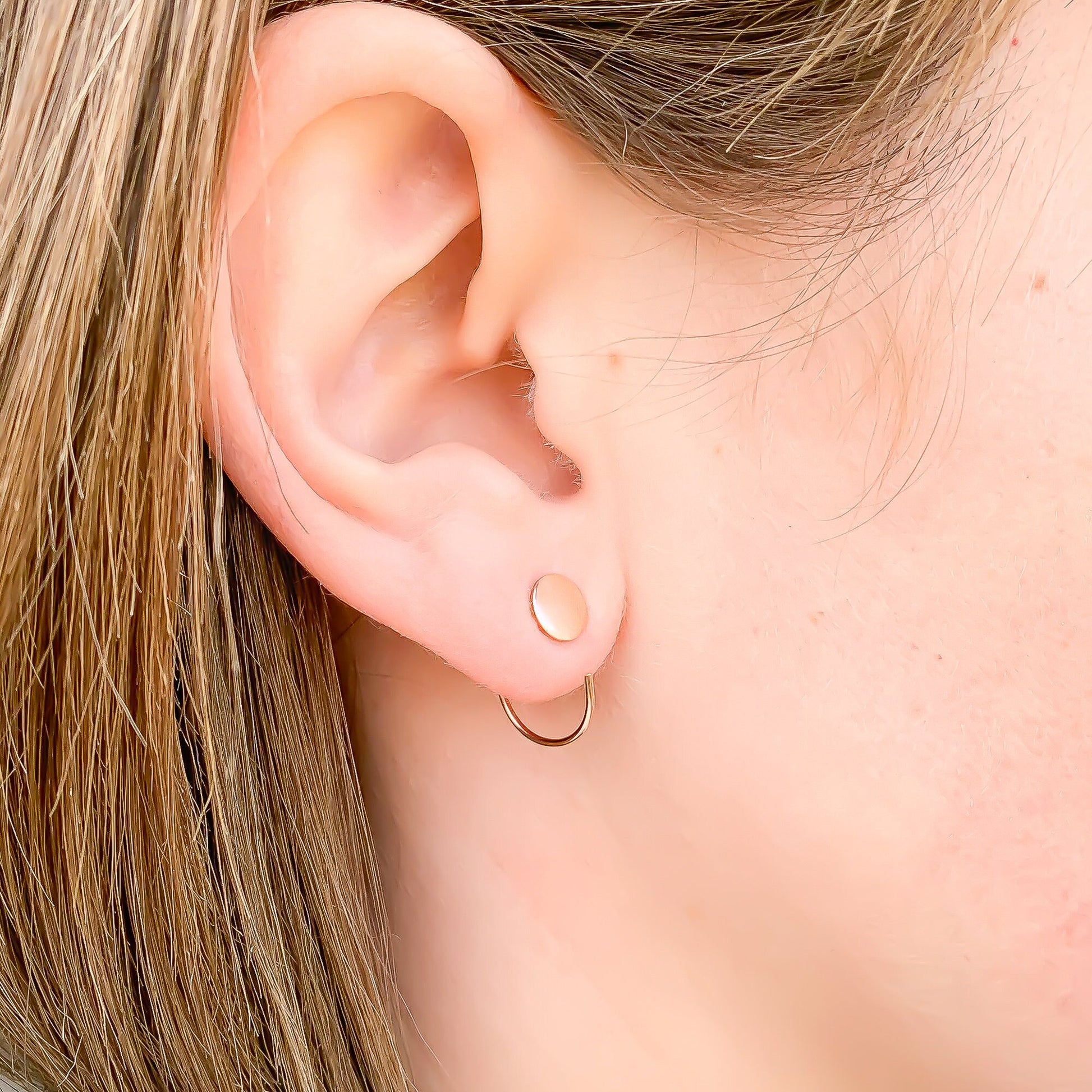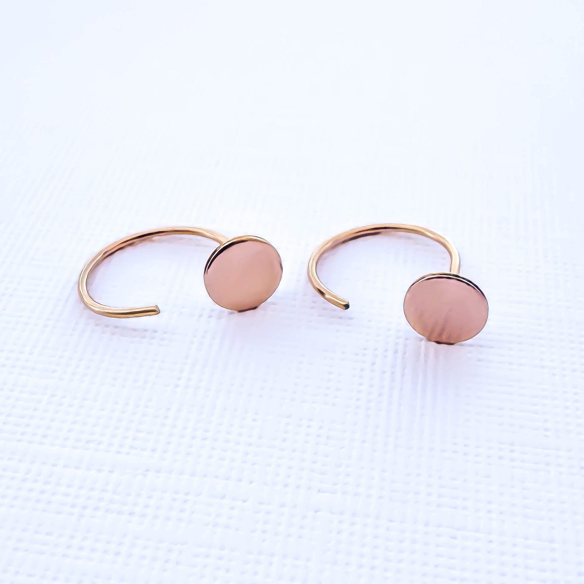 Disc Half Hoop Earrings, 14K Rose Gold Filled