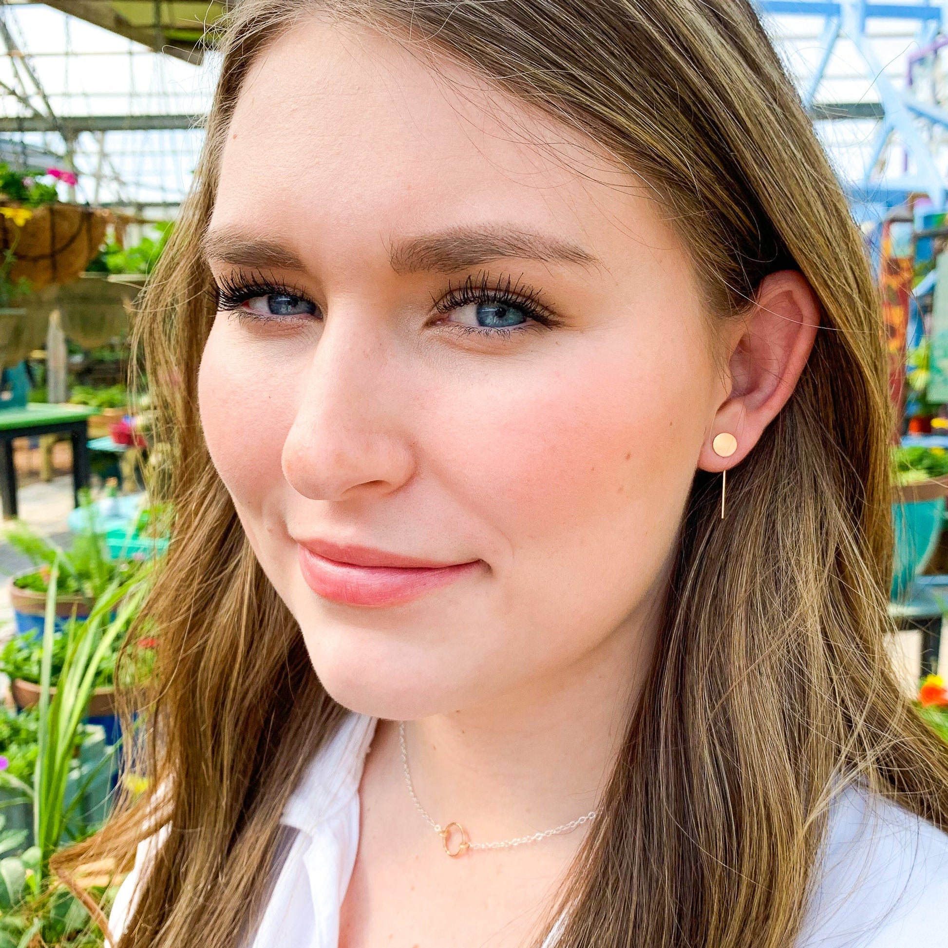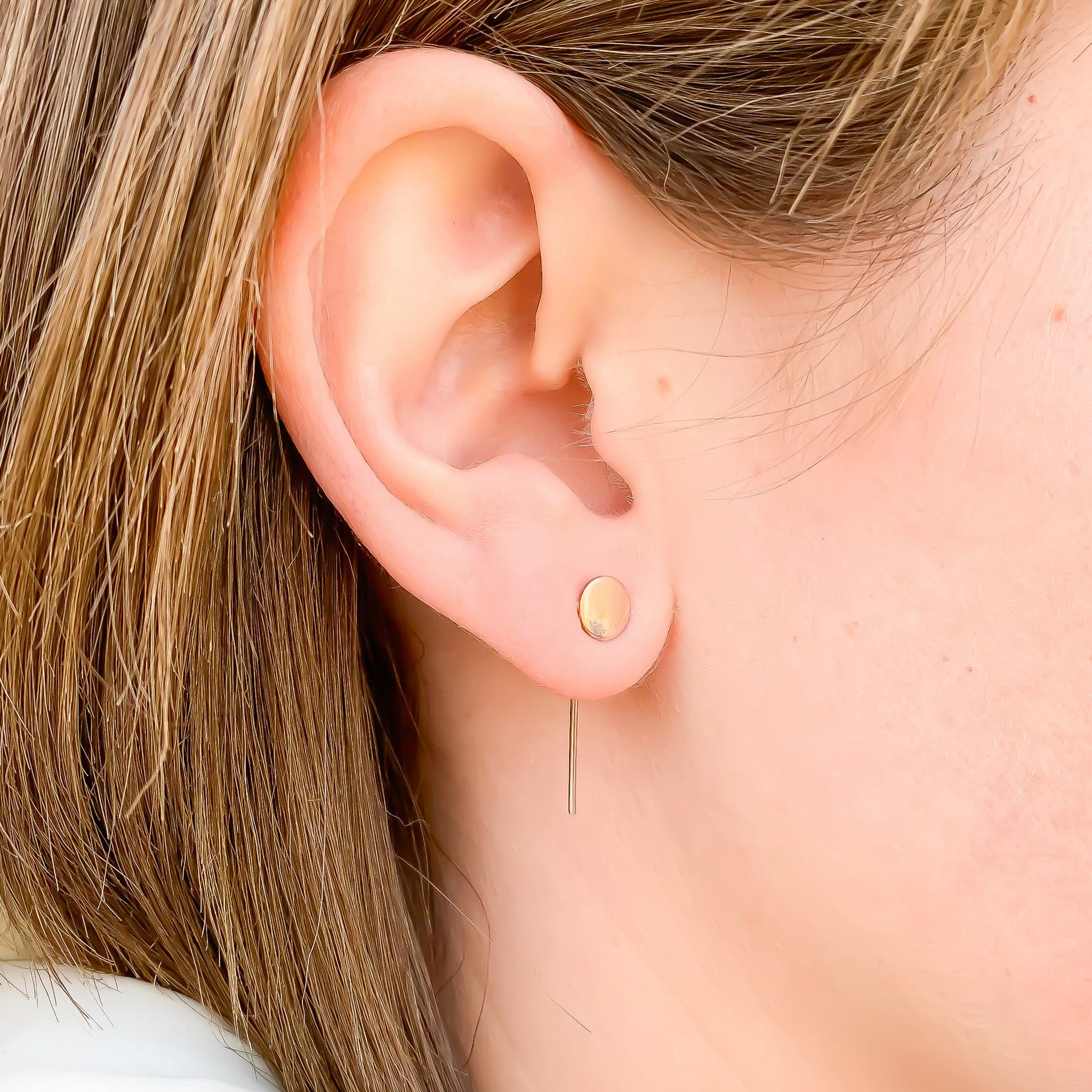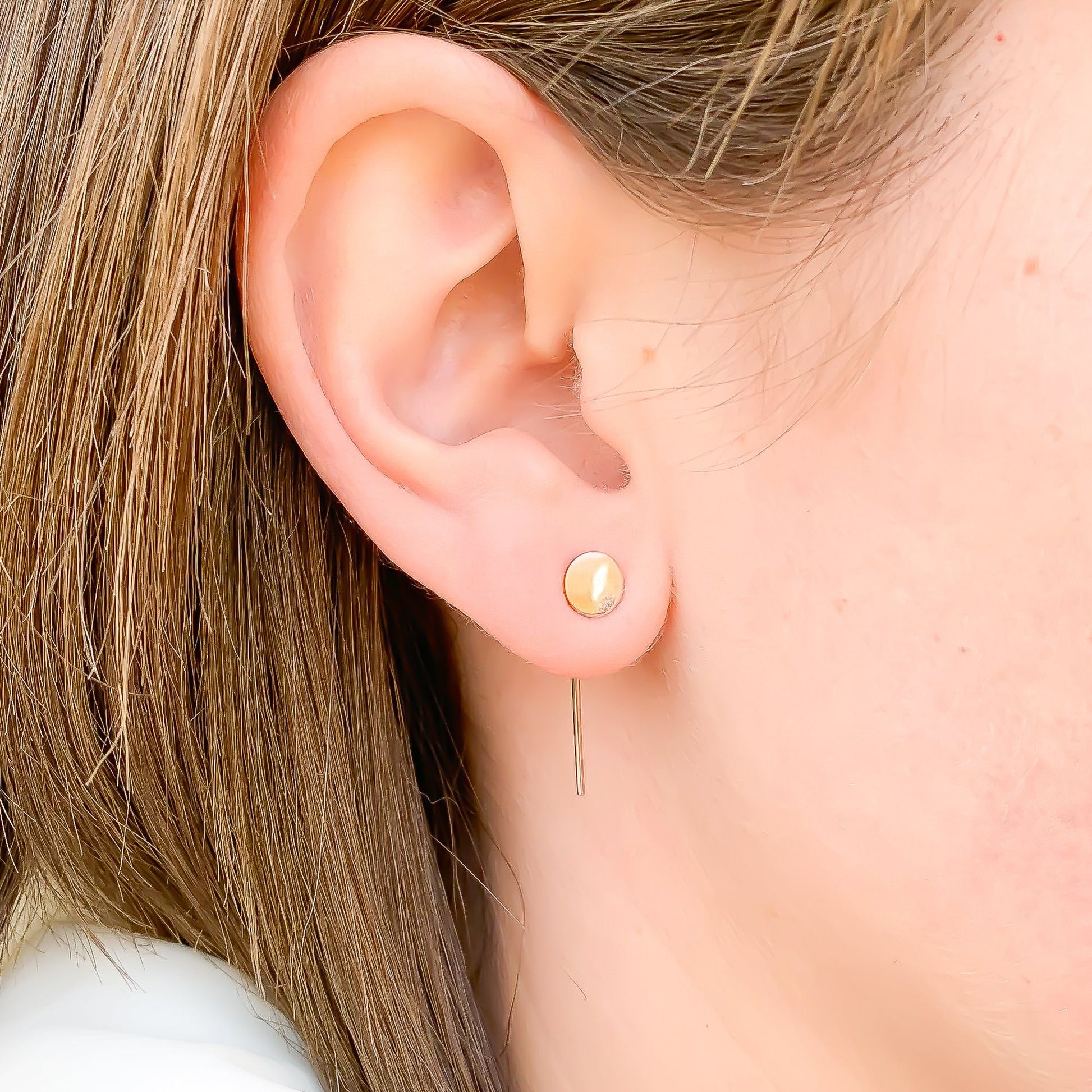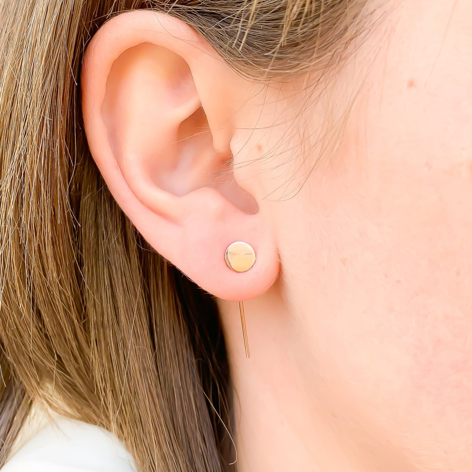 • Pair of 14K rose gold filled circle stud threader earrings.
