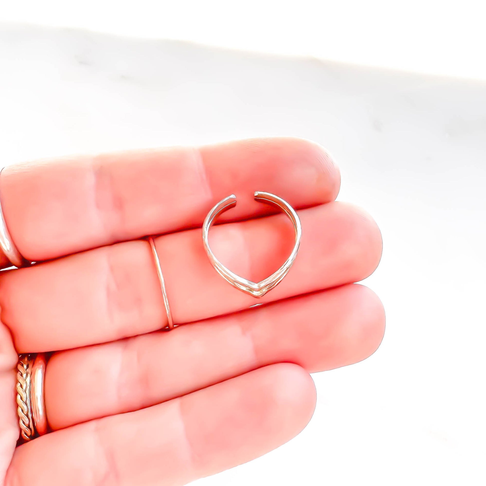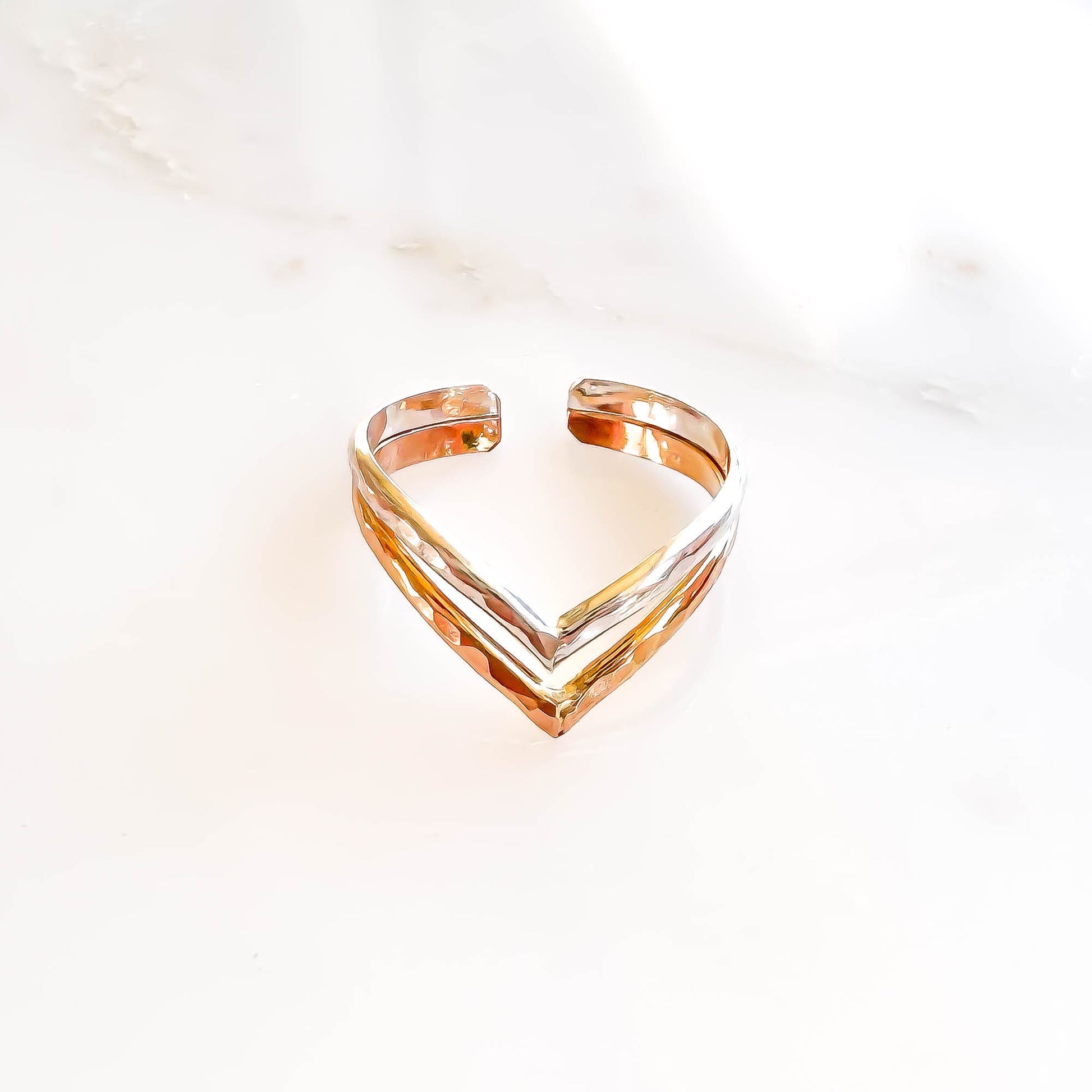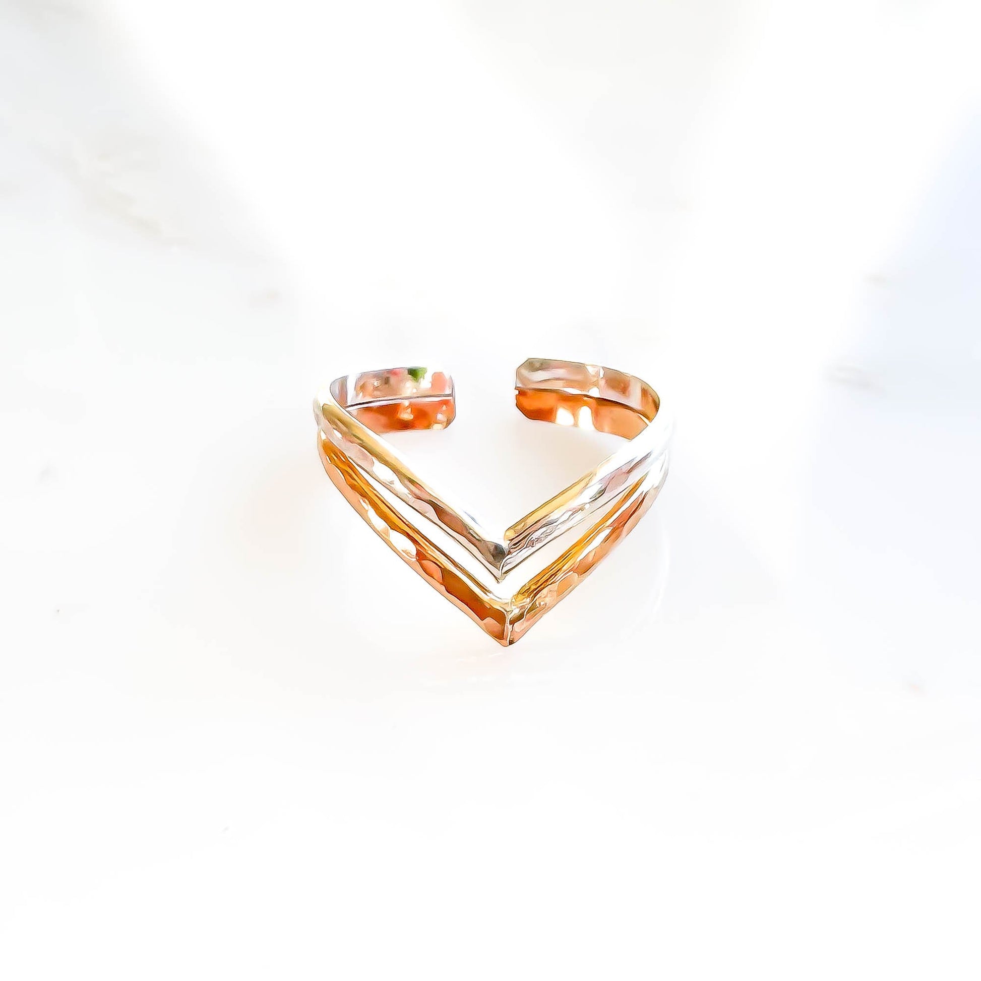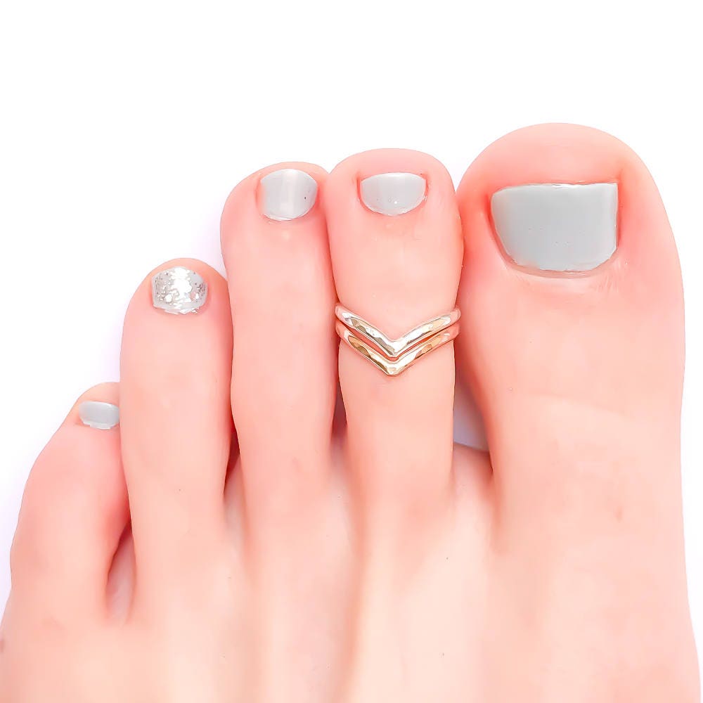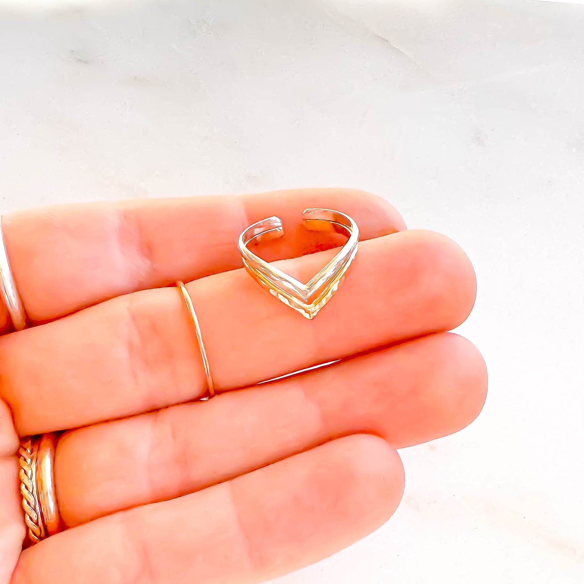 Double Chevron Toe Ring, 14K Gold Filled & Silver
