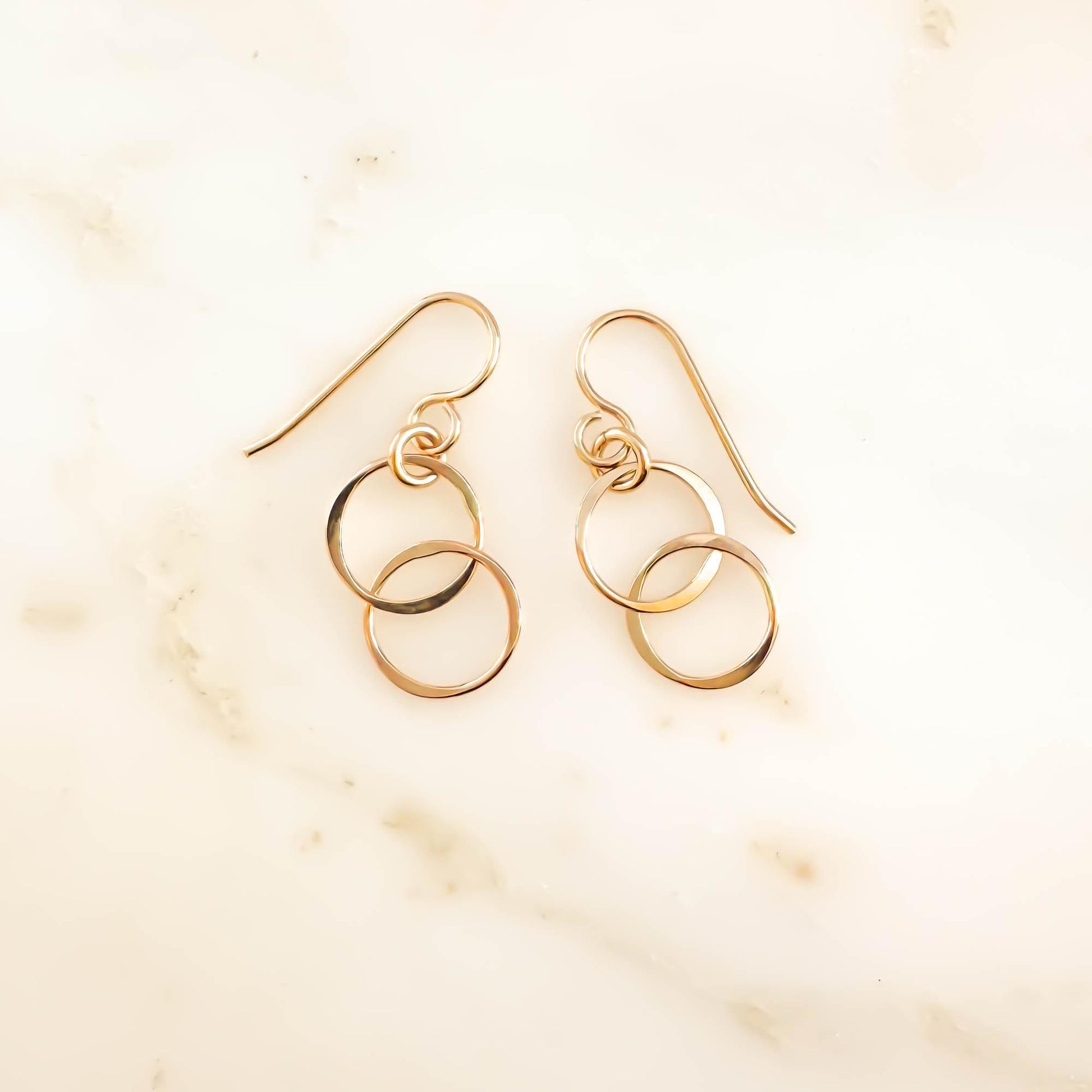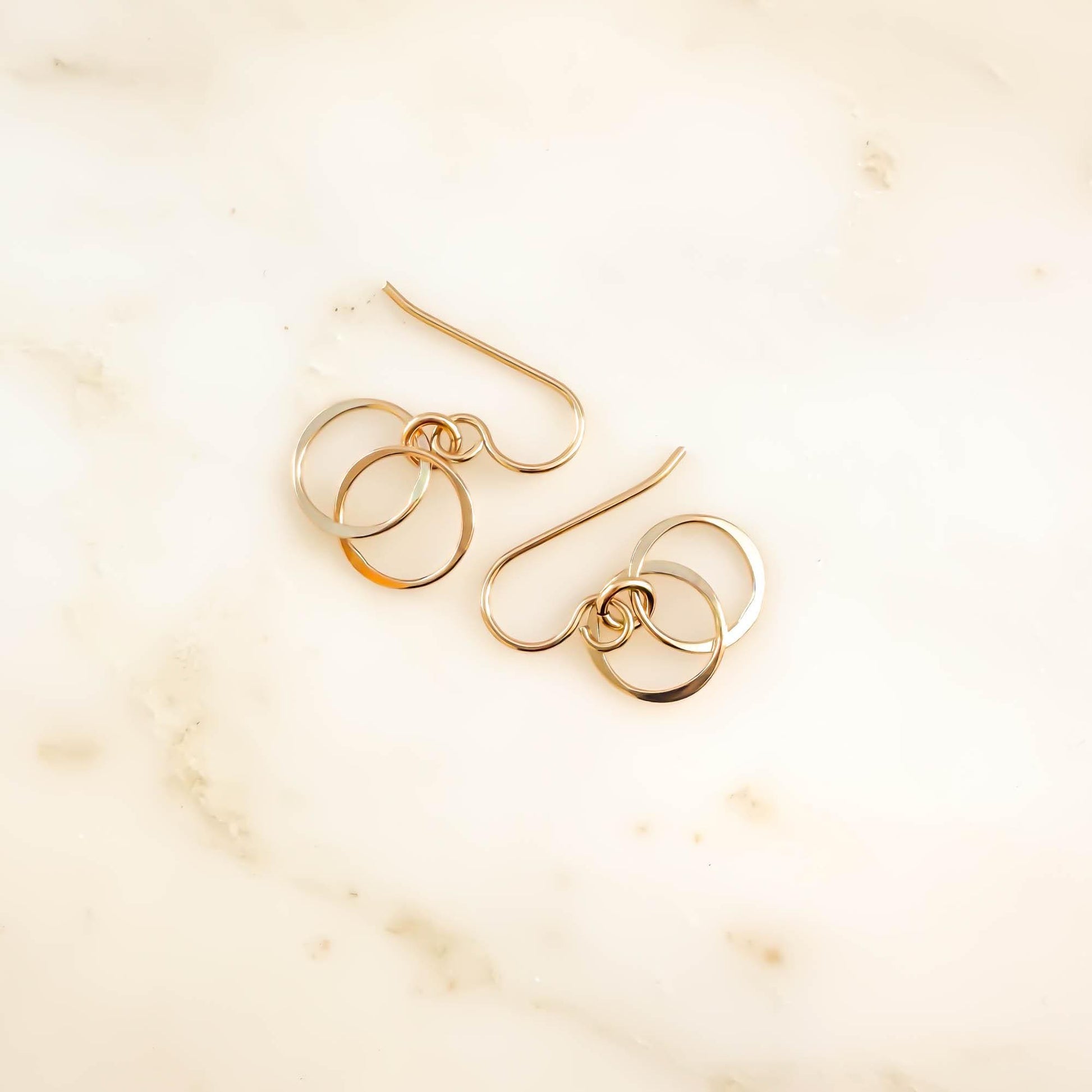 Double Circle Dangle Earrings, 14K Gold Filled