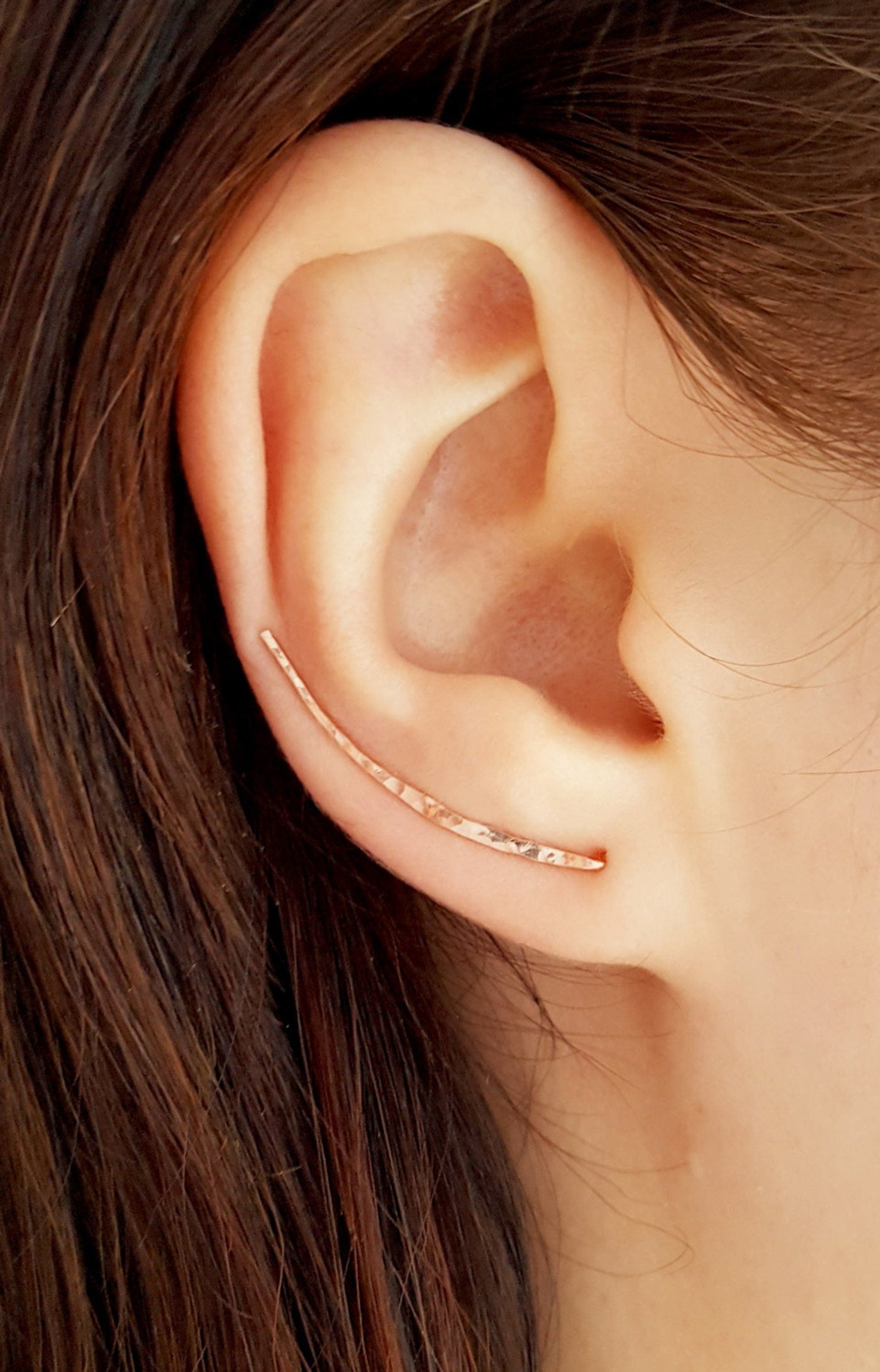 Gold climber earrings are a favorite, but also come in 925 sterling silver and 14K rose gold filled. The gold ear climber wears well in water and holds its shine, as does the silver and rose gold filled crawler earrings.