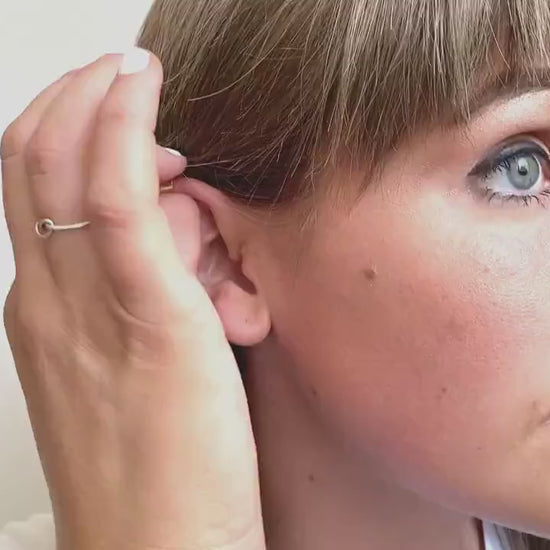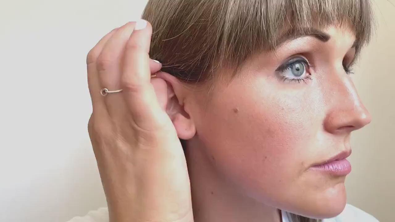 Ear cuff jewelry is often referred to as ear wrap earrings, because it lays flat against your skin. You adjust the ends closer or further apart, before putting it on. If you have thinner ears, it can help to push the ends together before putting on, and spreading the ends further apart if you have thicker ears. The first model shown, has a more fleshed upper ear cuff, so the cuff sits snug against her ear. The following models have thinner cartilage, so there can be a small gap beneath the cartilage. Or, the ear cuff can be adjusted, and slide to various parts of your ear for your best fit. The possibilities are endless!