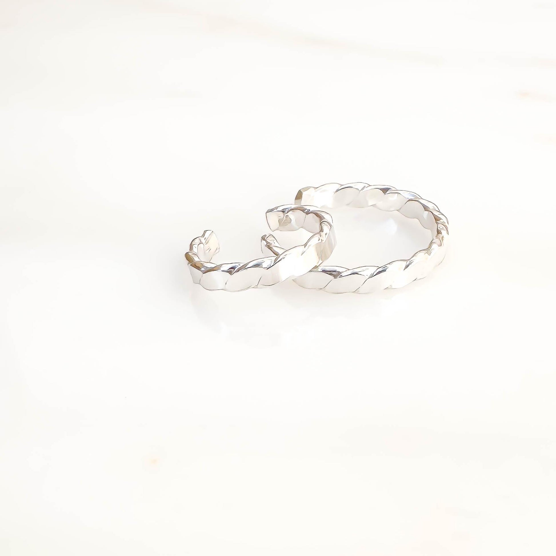 Flat Woven Mini Ear Cuff, Sterling Silver