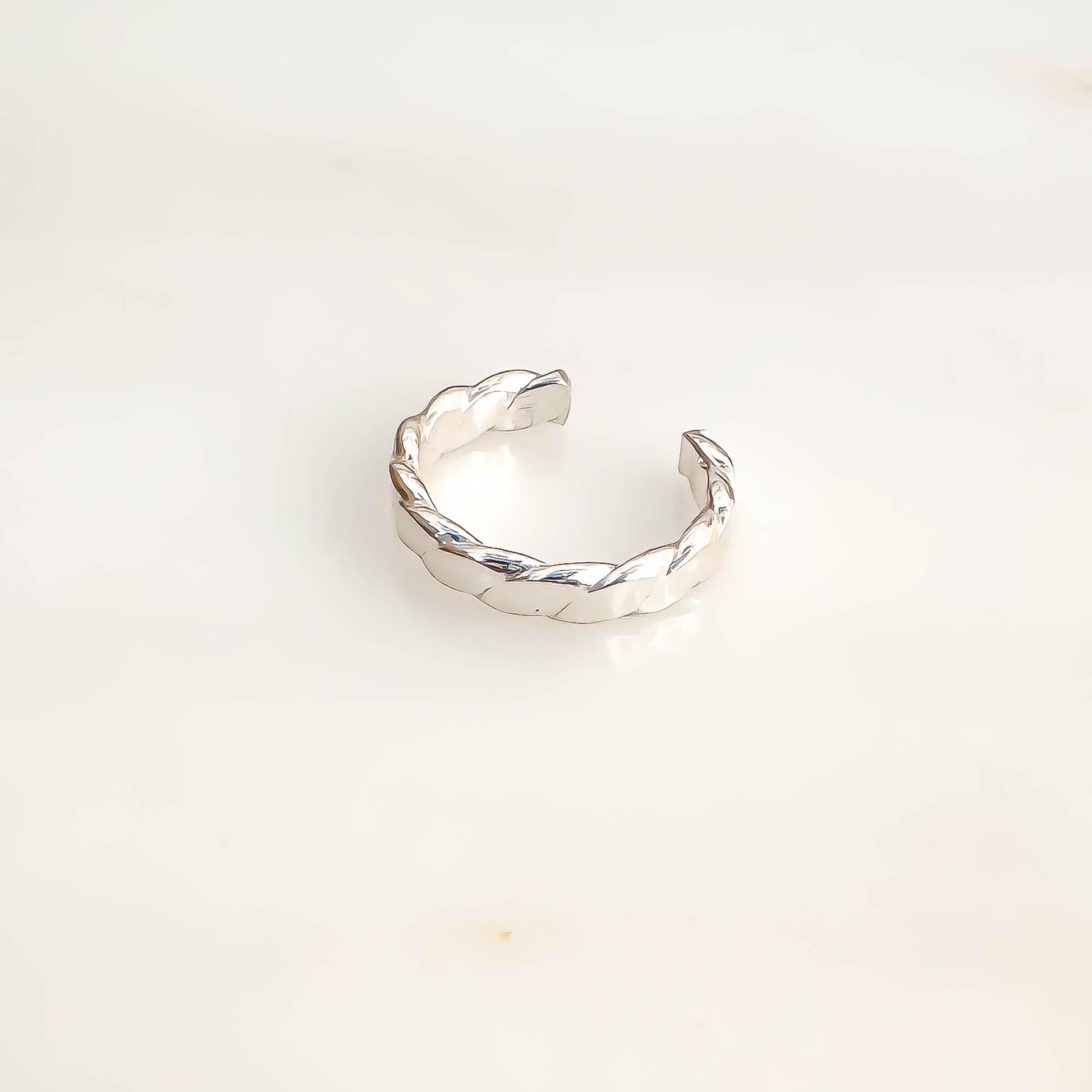 This is a dainty ear cuff in solid sterling silver. It has an elegant, unique interwoven twist design.