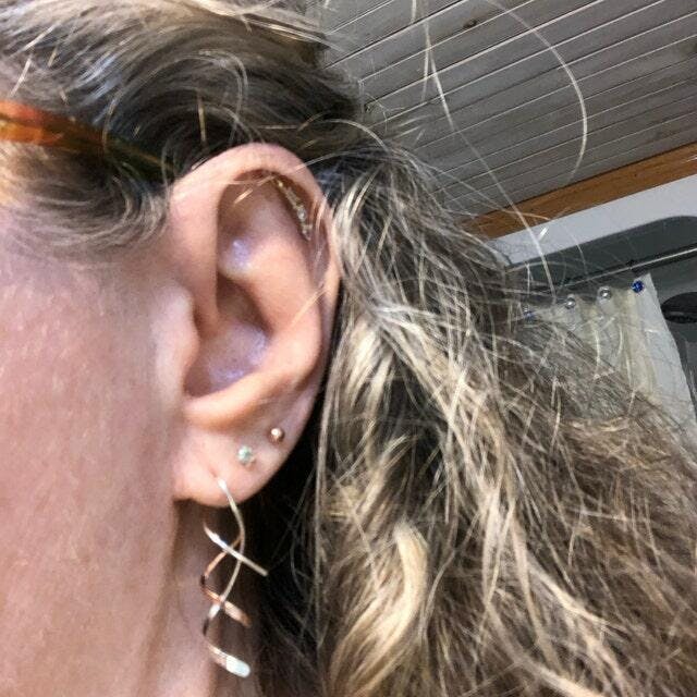 Without fail, these gold spiral earrings in all different metal types, are a popular for gift giving from Christmas time to Mother’s Day. Also, as a gift to yourself—the handmade and one-of-a-kind nature of these earrings makes them a favorite. Most people love how they are designed to stay securely in your ear, while also feeling light and dainty.
