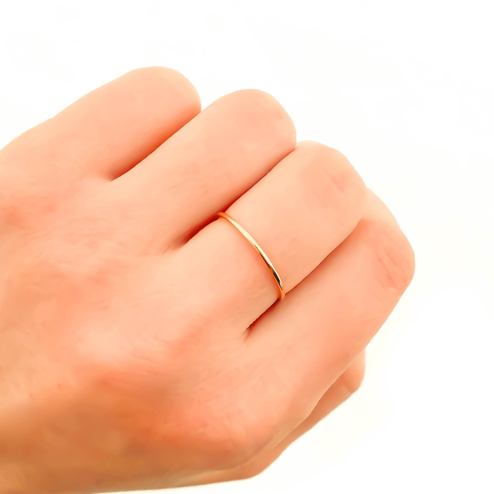 Often we find that people like to pair this thin gold ring with wedding ring sets, or wear as an alternative wedding ring. 14K gold filled wears well, and can be used for years to come. While it is thin, it is sturdy, and fits in the crease of your finger, which makes it optimally comfortable.