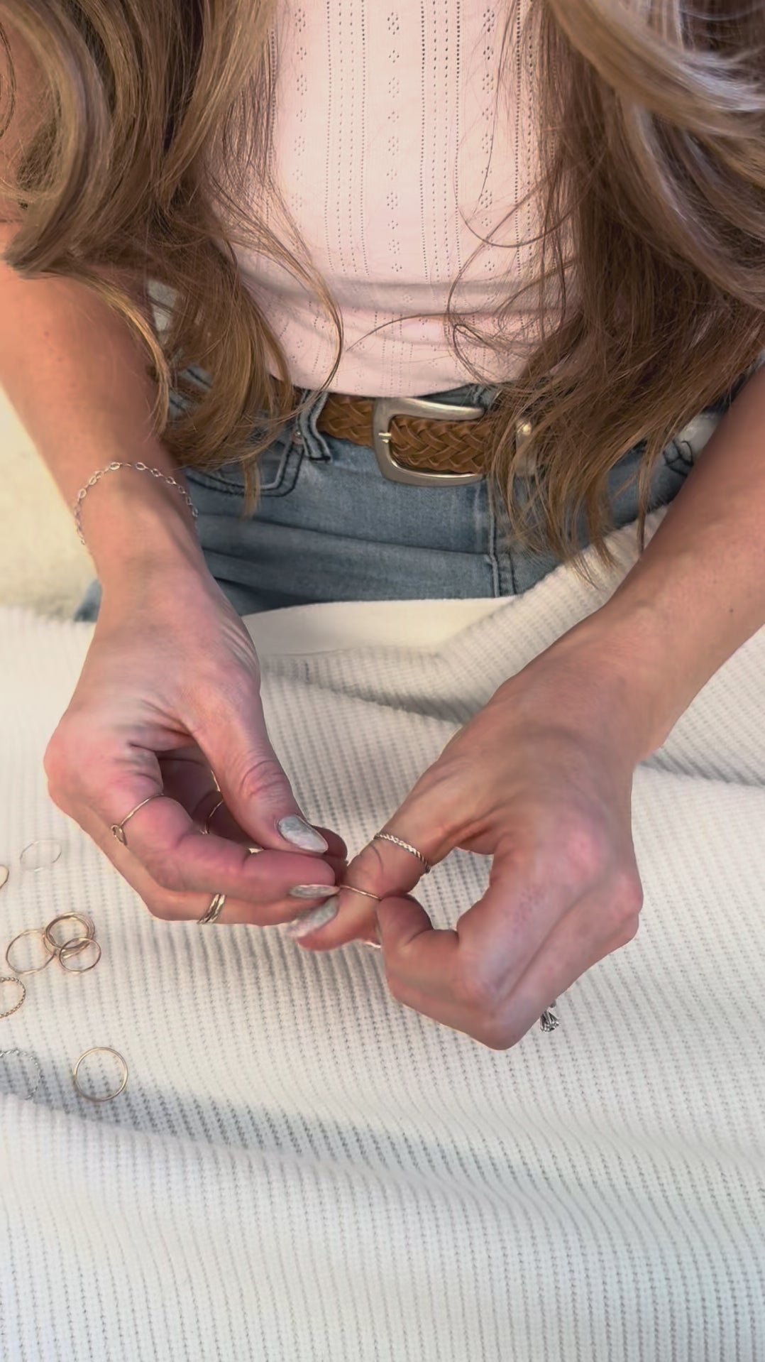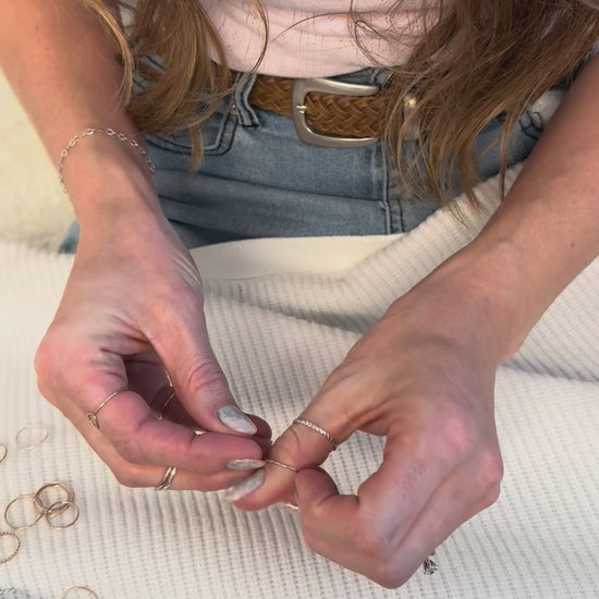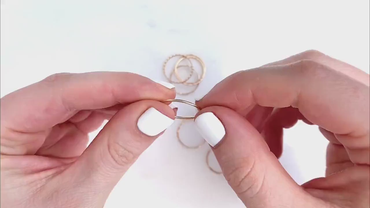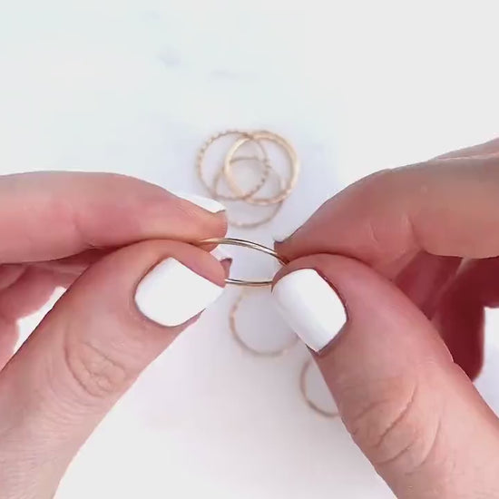 Thin gold stacking rings are wildly popular; probably because they can be dainty and minimal, or stacked to be bold. Wondering how to wear stacked rings? Wear these gold stackable rings as a midi ring, or on any finger, for endless combinations and possibilities.