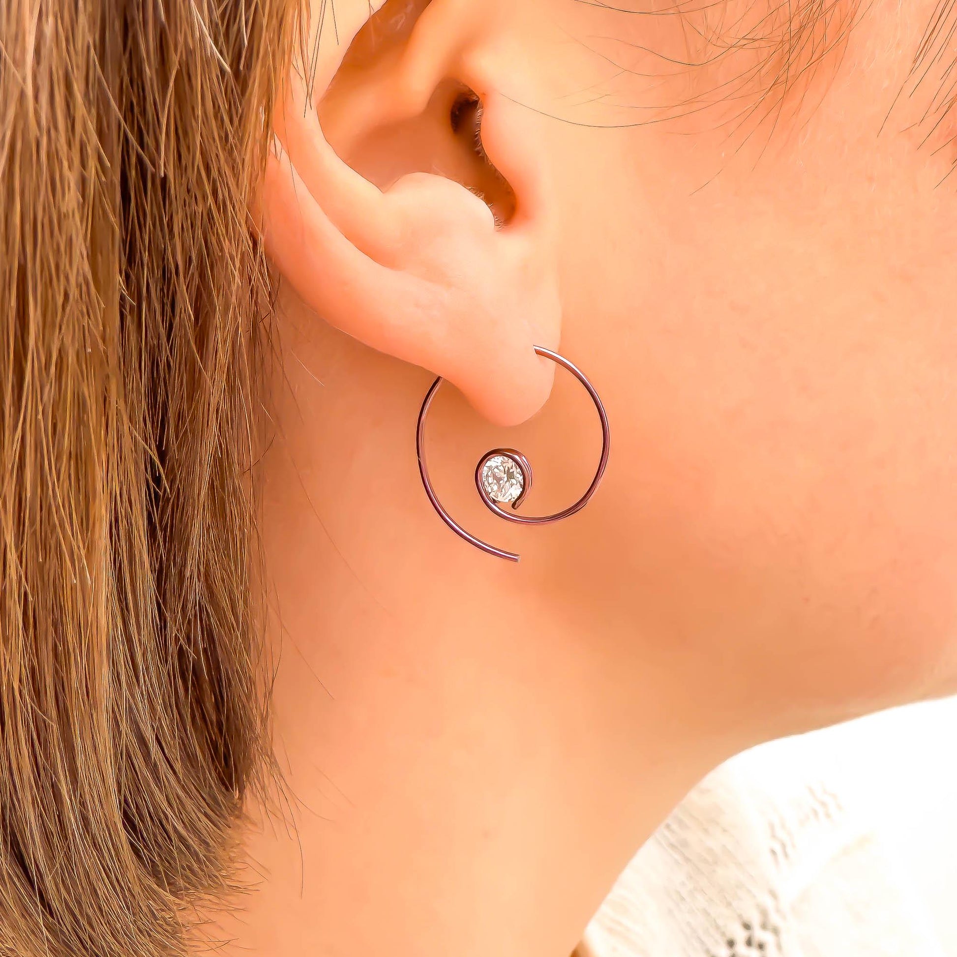 • Handcrafted spiral hoop earrings, with 5mm CZ (cubic zirconia) simulated diamonds.