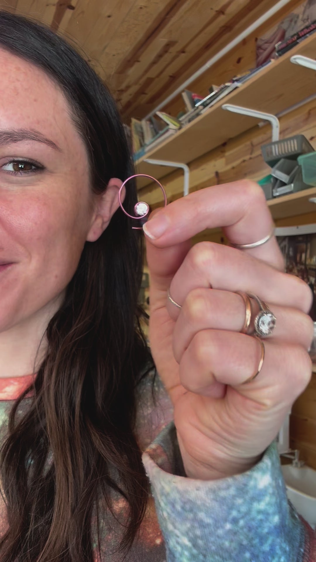 Pink Threader CZ Spiral Hoop Earrings, Niobium