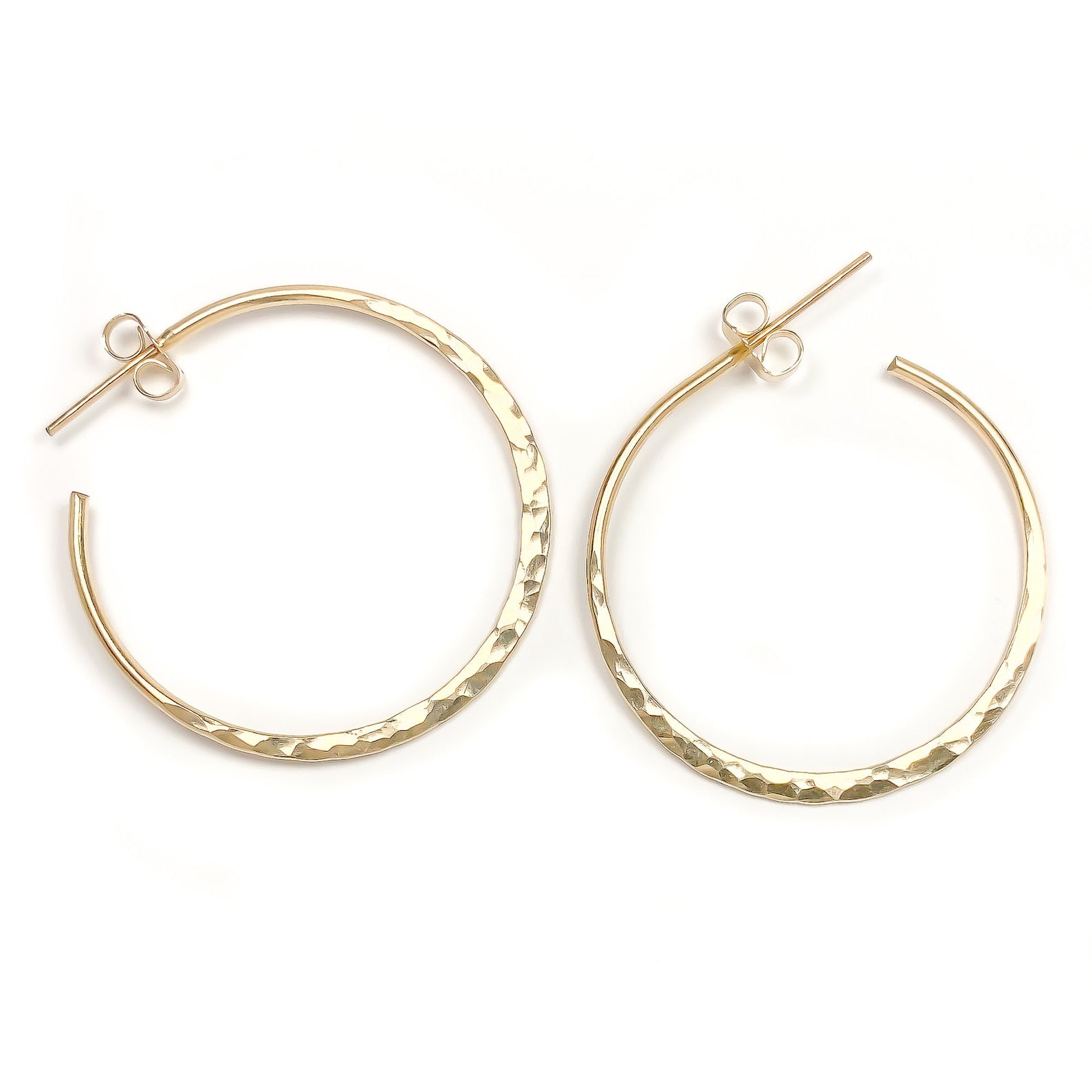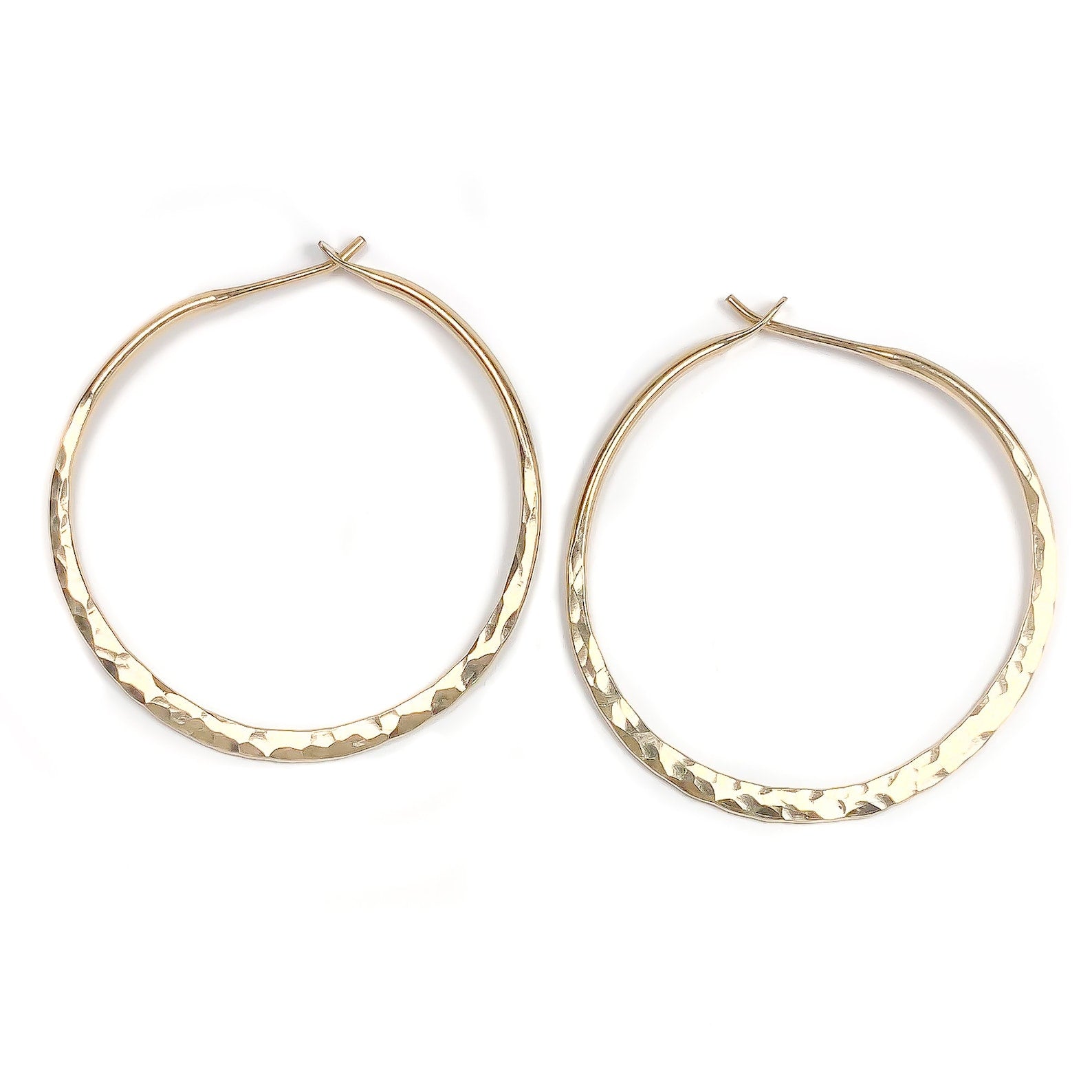 These hoops have a beautiful hand hammered and flattened surface to add more shine and dimension to your classic hoops.