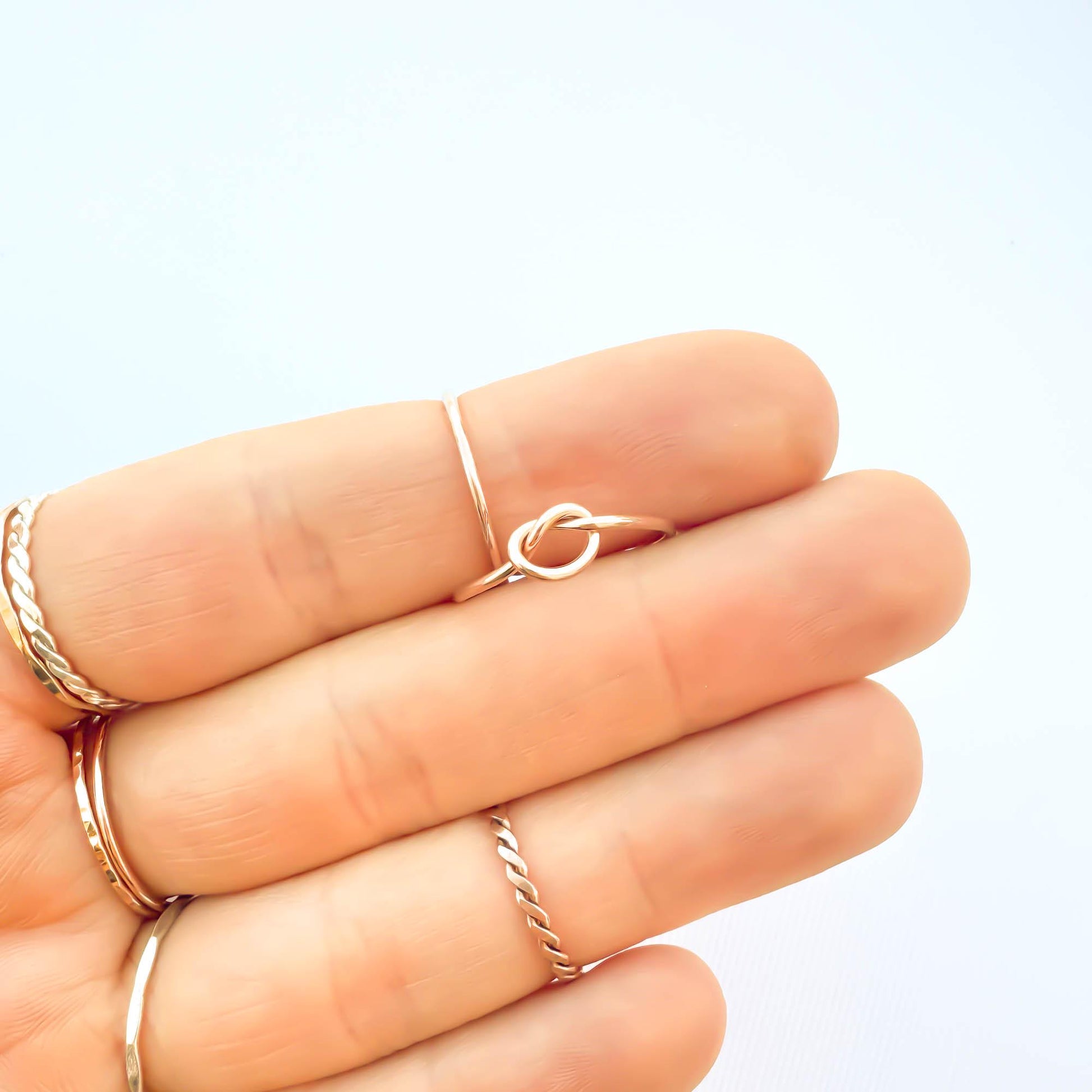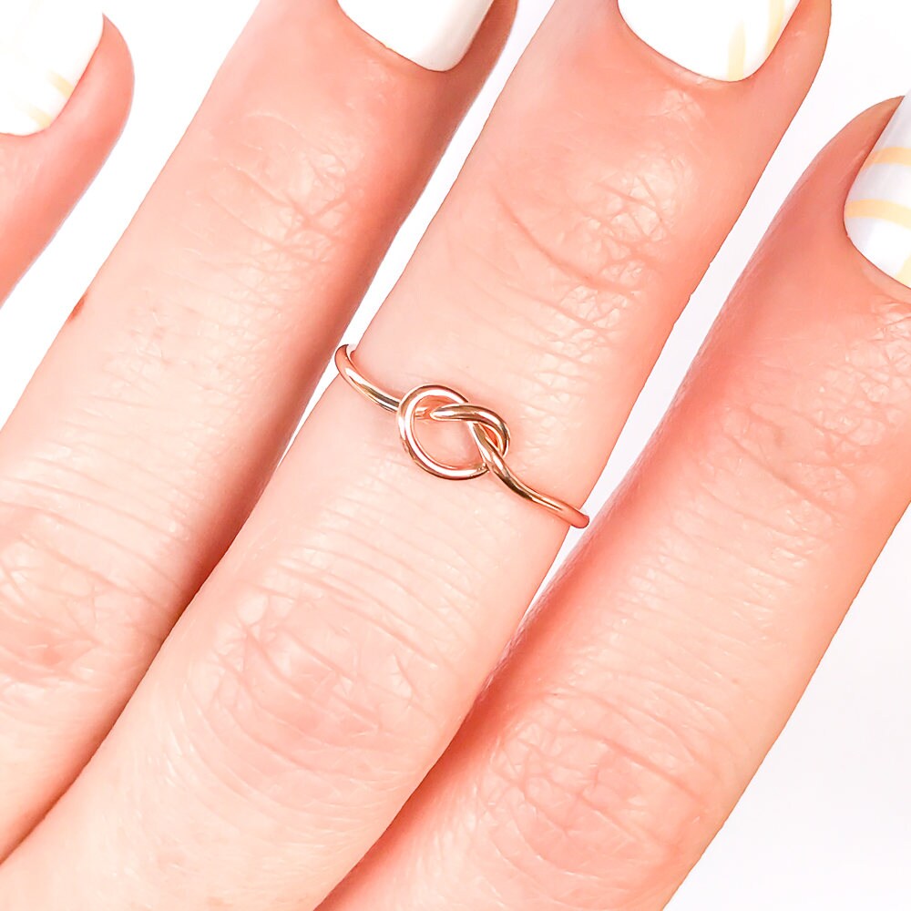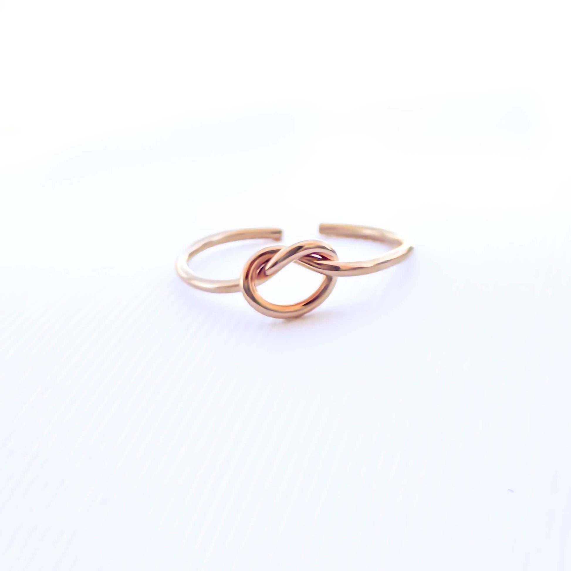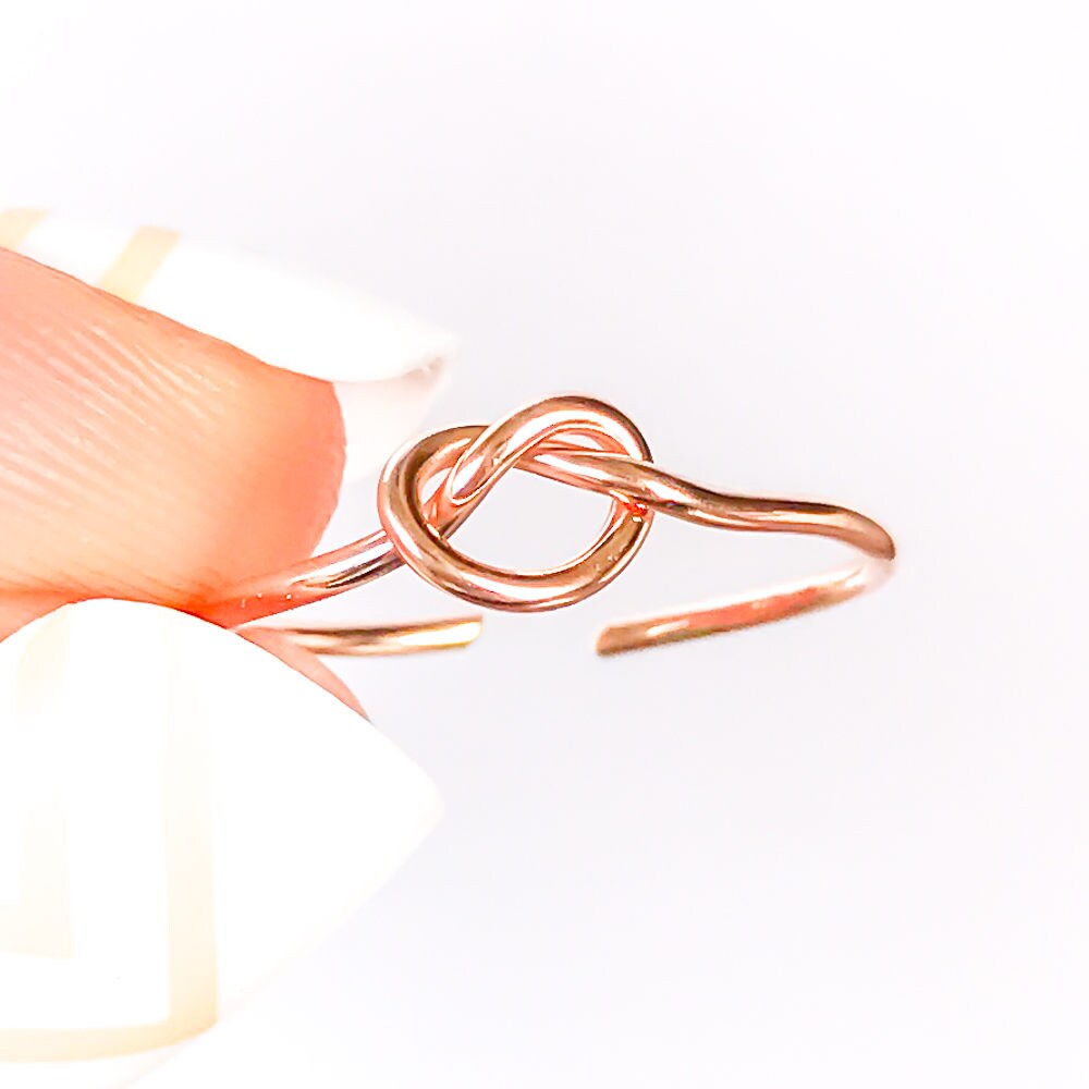 • This toe ring is hand formed/tied into a knot with one continuous strand of 14K rose gold filled 18 gauge round wire.