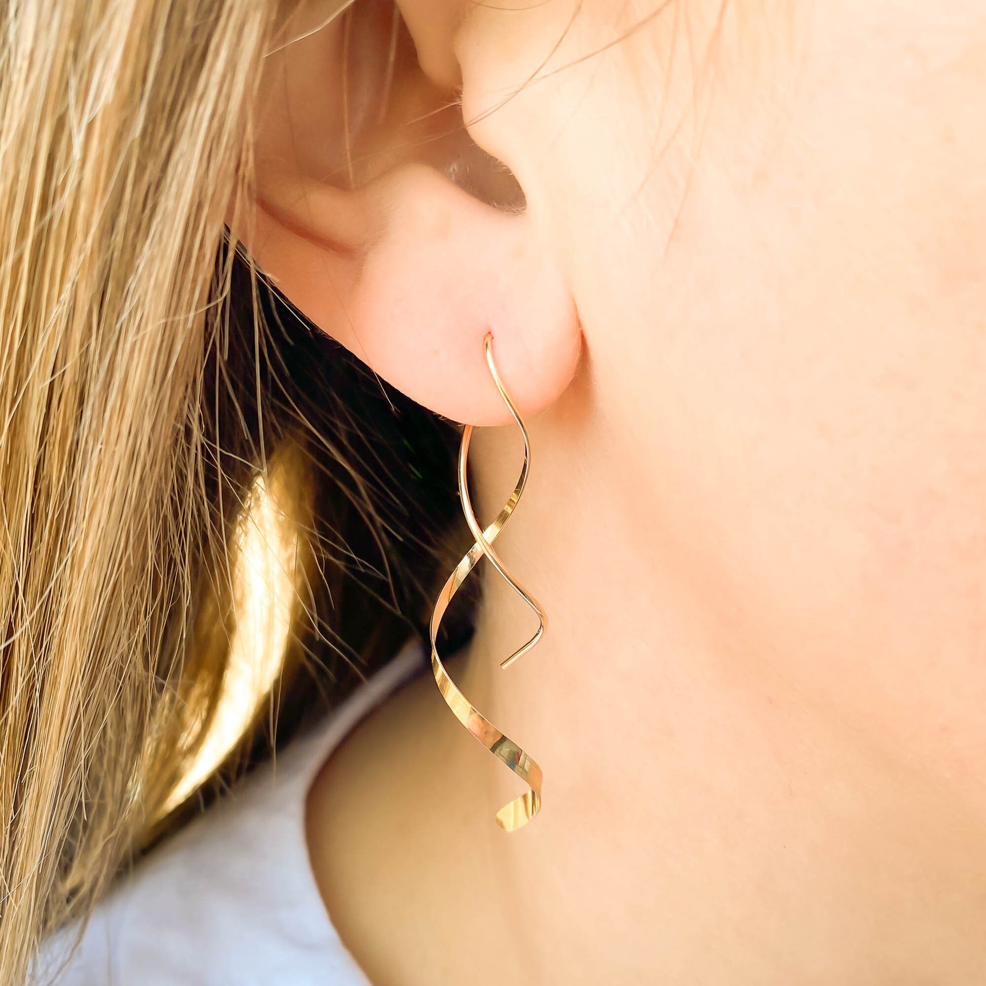 • These are threader earrings, and traditionally don't require earring backs. But for those with active lifestyles, and if you like a secure fit—we do offer 5mm silicone earring backs. Slide/twist on gently, to preserve the earring's shape.