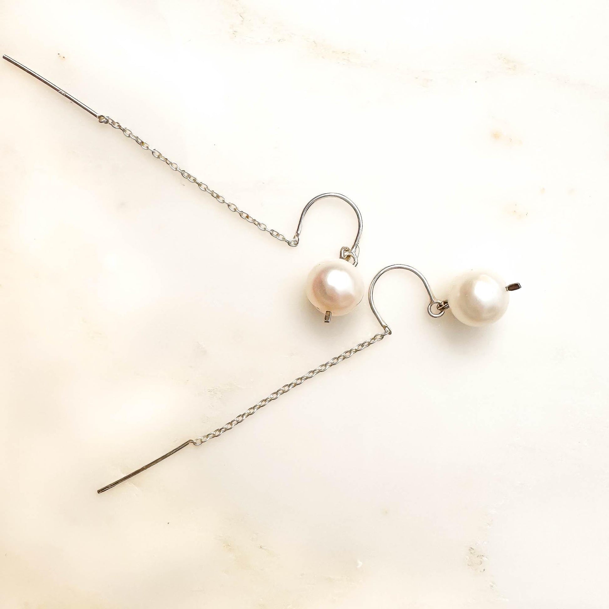Gravity: Pearl Threader Earrings, Sterling Silver