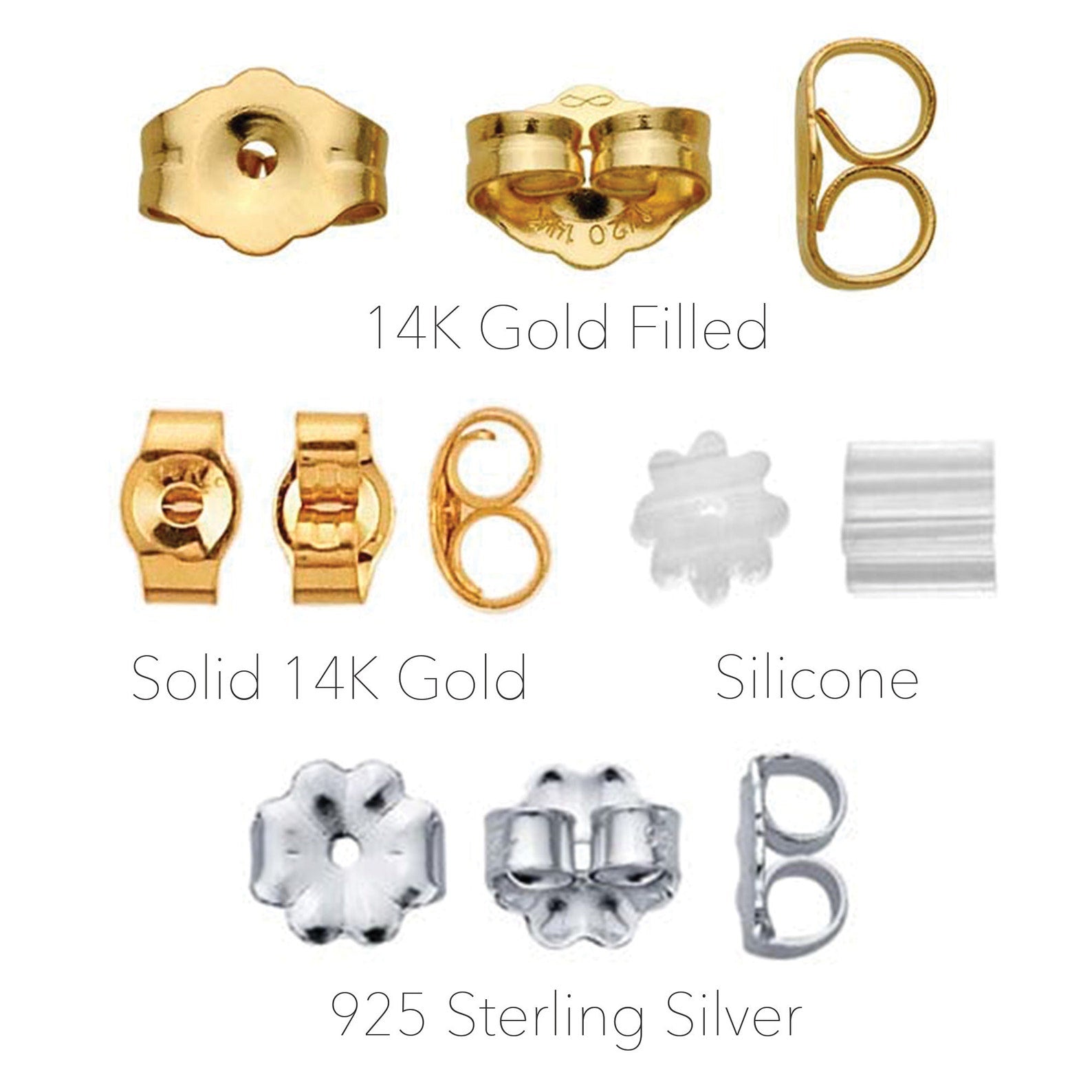 • 14K gold filled earring backs: An affordable alternative to solid 14K gold. 6mm wide, sturdy.