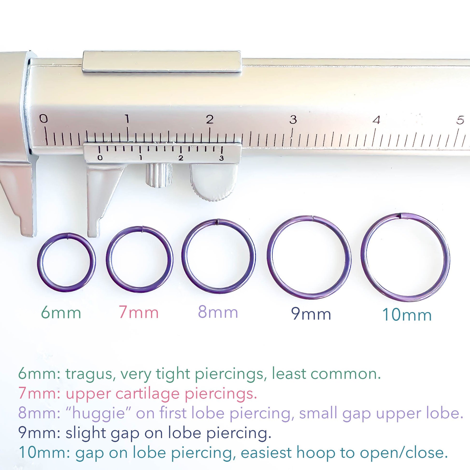 ••7mm: VERY SMALL—usually only for cartilage piercings, or high lobe 2nd or 3rd piercings